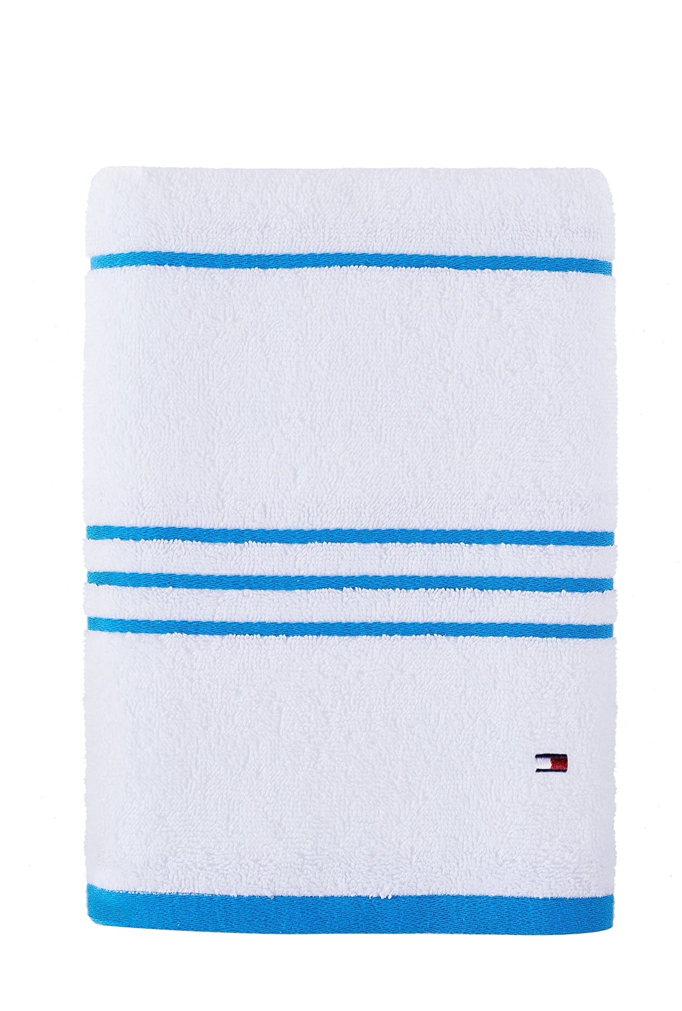 Tommy Hilfiger Modern American Stripe Bath Towel, 30 X 54 Inches, 100% Cotton 574 Gsm (White/Swedish Blue)