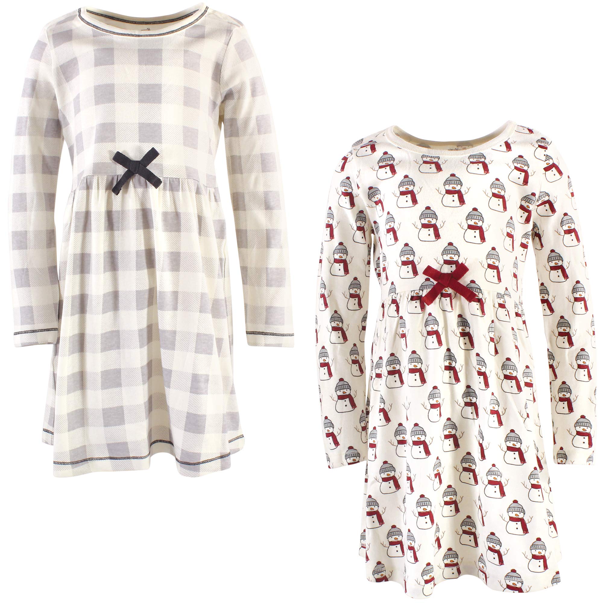 Touched By Nature Girls, Toddler, Baby And Womens Organic Cotton Short-Sleeve And Long-Sleeve Dresses, Snowman Long Sleeve, 7 Ye
