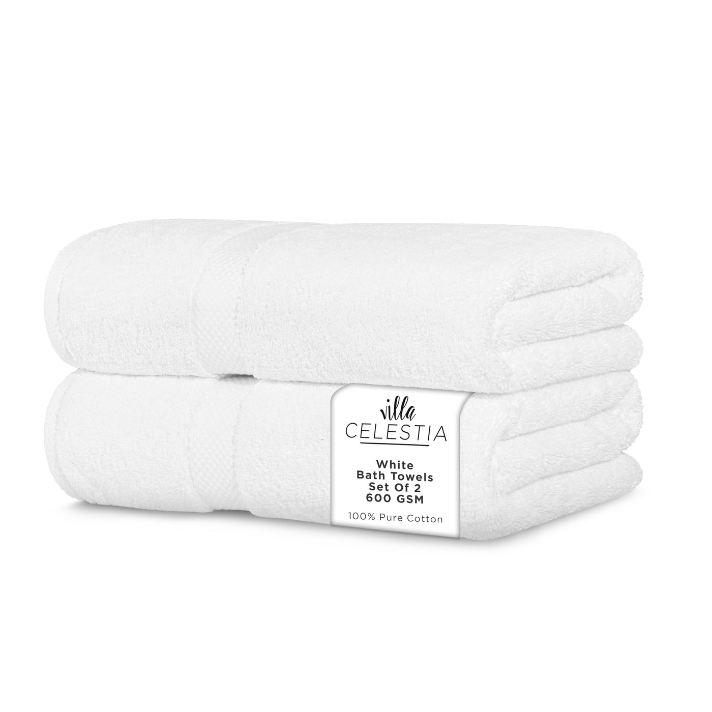 Villa Celestia 600 Gsm 100% Cotton Bath Towels, White, Set Of 2, Highly Absorbent, Plush, Soft, Quick Dry, 2 Pieces Combed Cotto