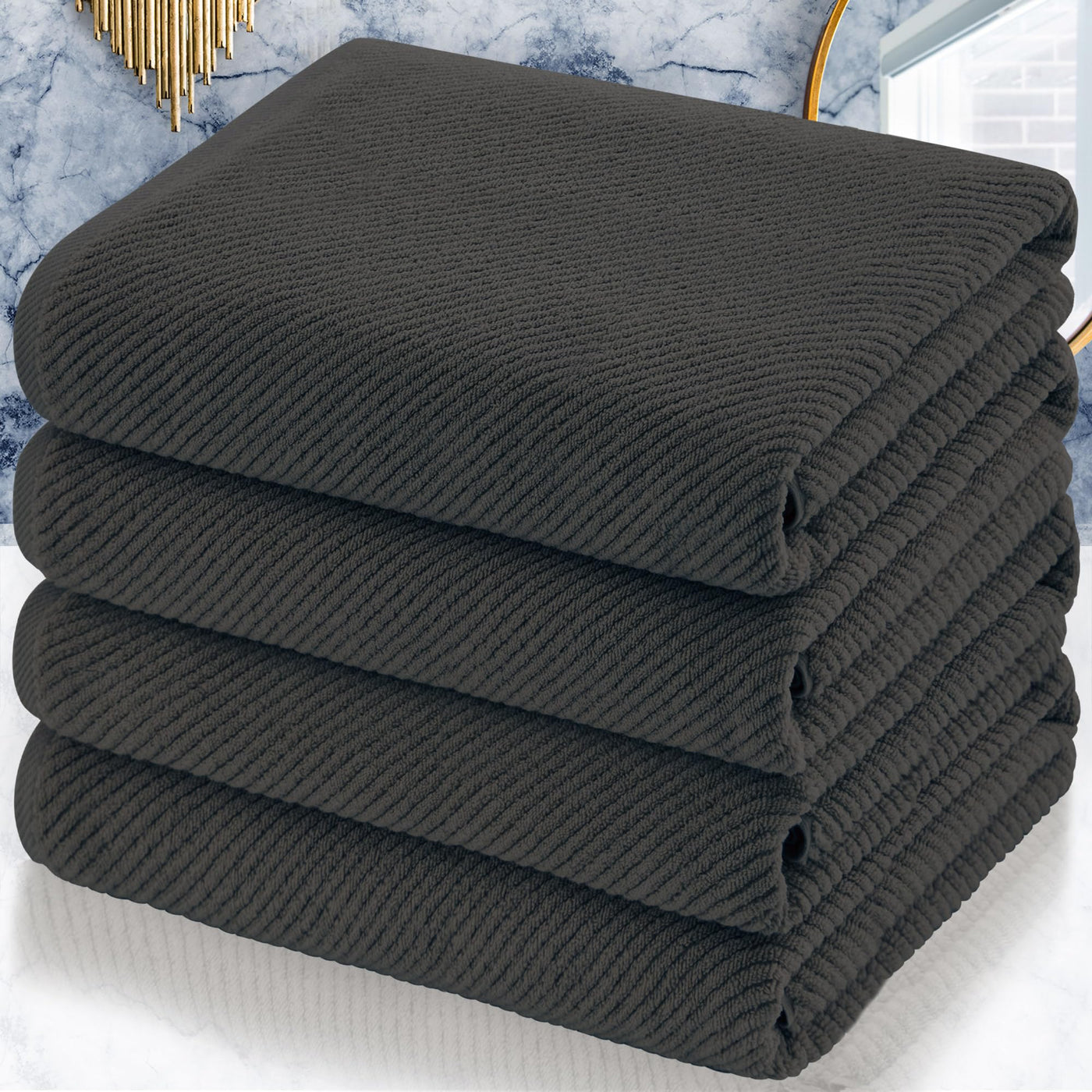 Voova & Movas Grey Bath Towels (4Pc, Large 30''X56'') - 100% Cotton | Quick Dry | Light Weight | Thick | Soft | Absorbent, Luxur