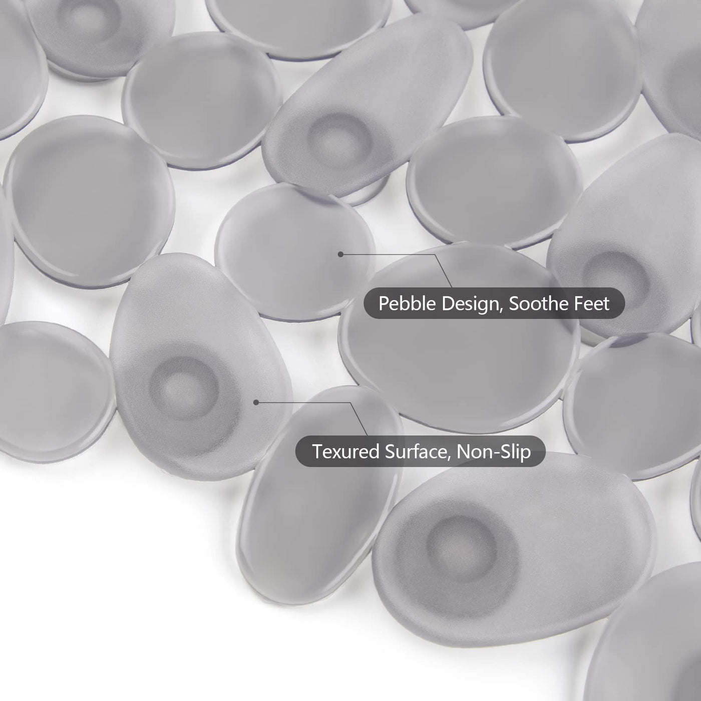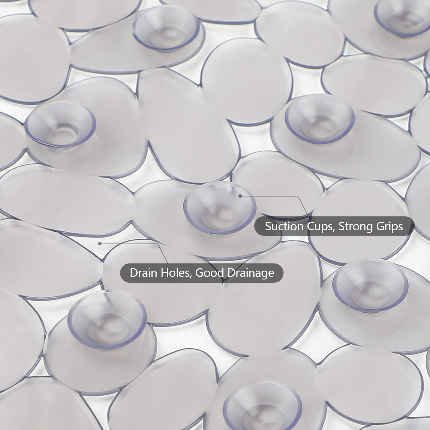 WELTRXE Non Slip Bathtub Mat 35 x 16 Inches Pebbles Shower Mats with Suction Cups Drain Holes for Bathroom Showers Tub Machine Washable Bathroom Mats BPA Latex Free Safe Tub Mats - Clear Gray
