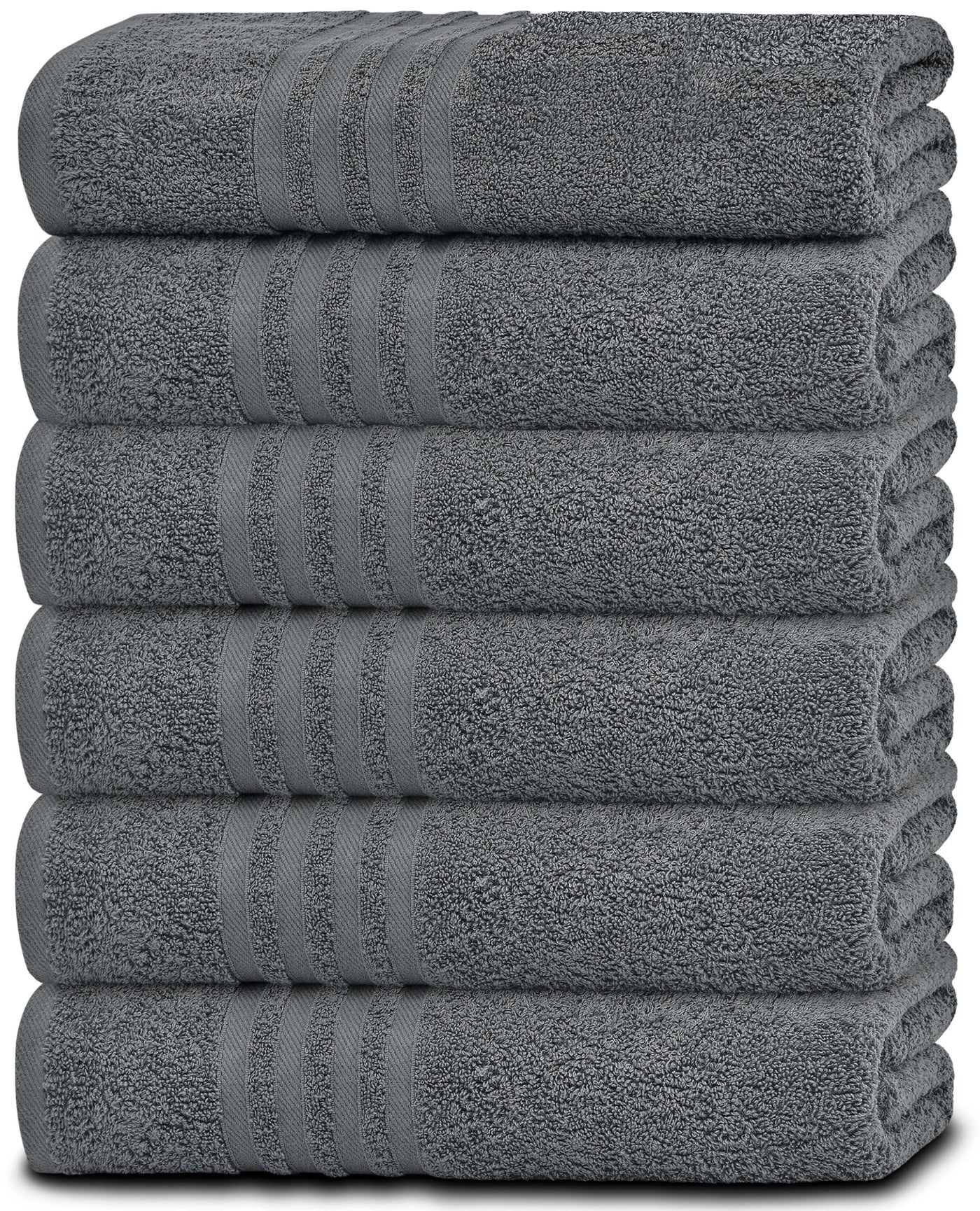 White Classic Wealuxe Grey Towels For Bathroom 6 Pack, Cotton Bath Towel Set For Hotel, Gym, Spa, Soft Extra Absorbent Quick Dry
