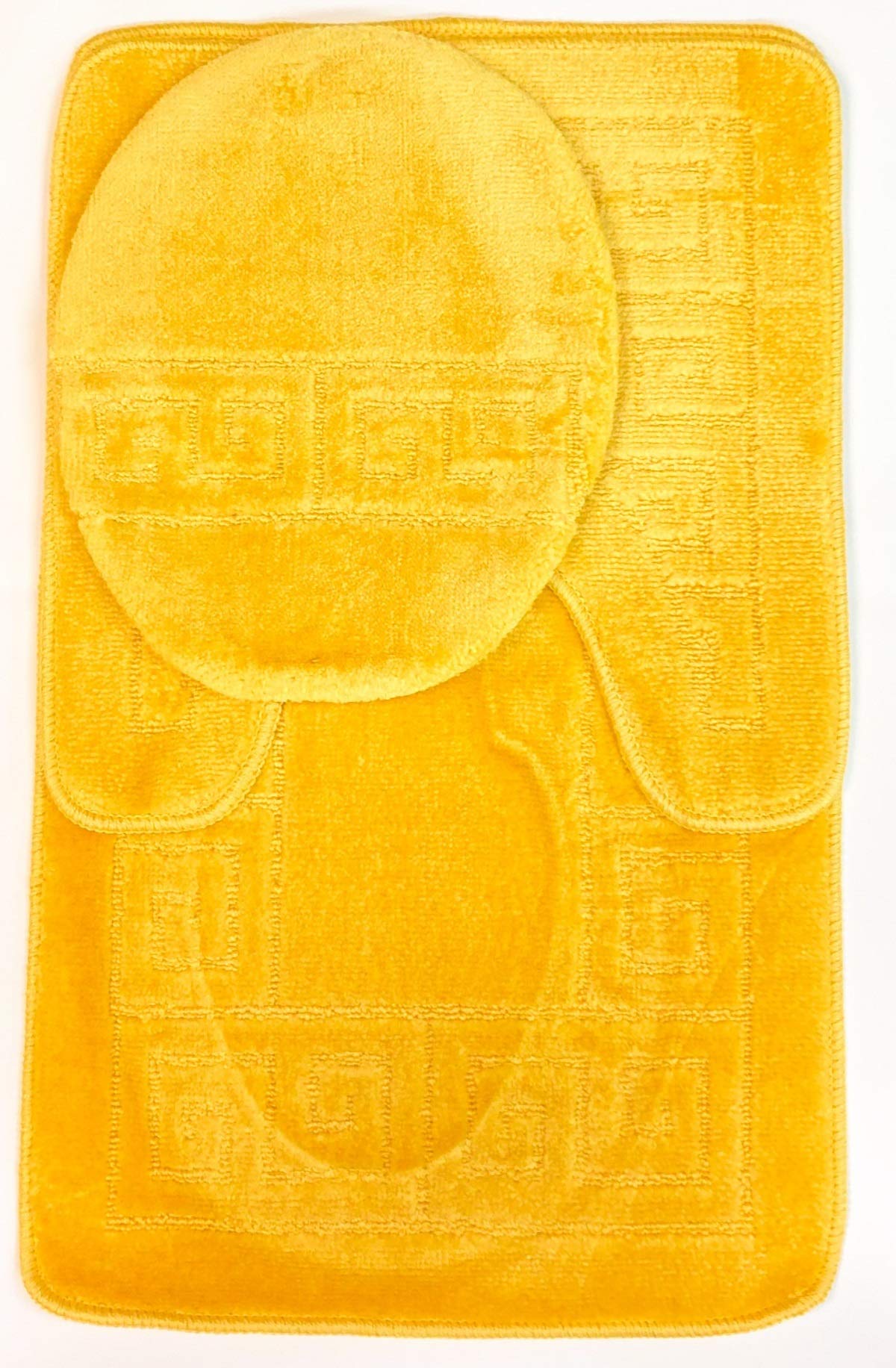 Wpm World Products Mart 3 Piece Bath Rug Set Pattern Bathroom Rug (20''X32'')/Large Contour Mat (20''X20'') With Lid Cover (Yell
