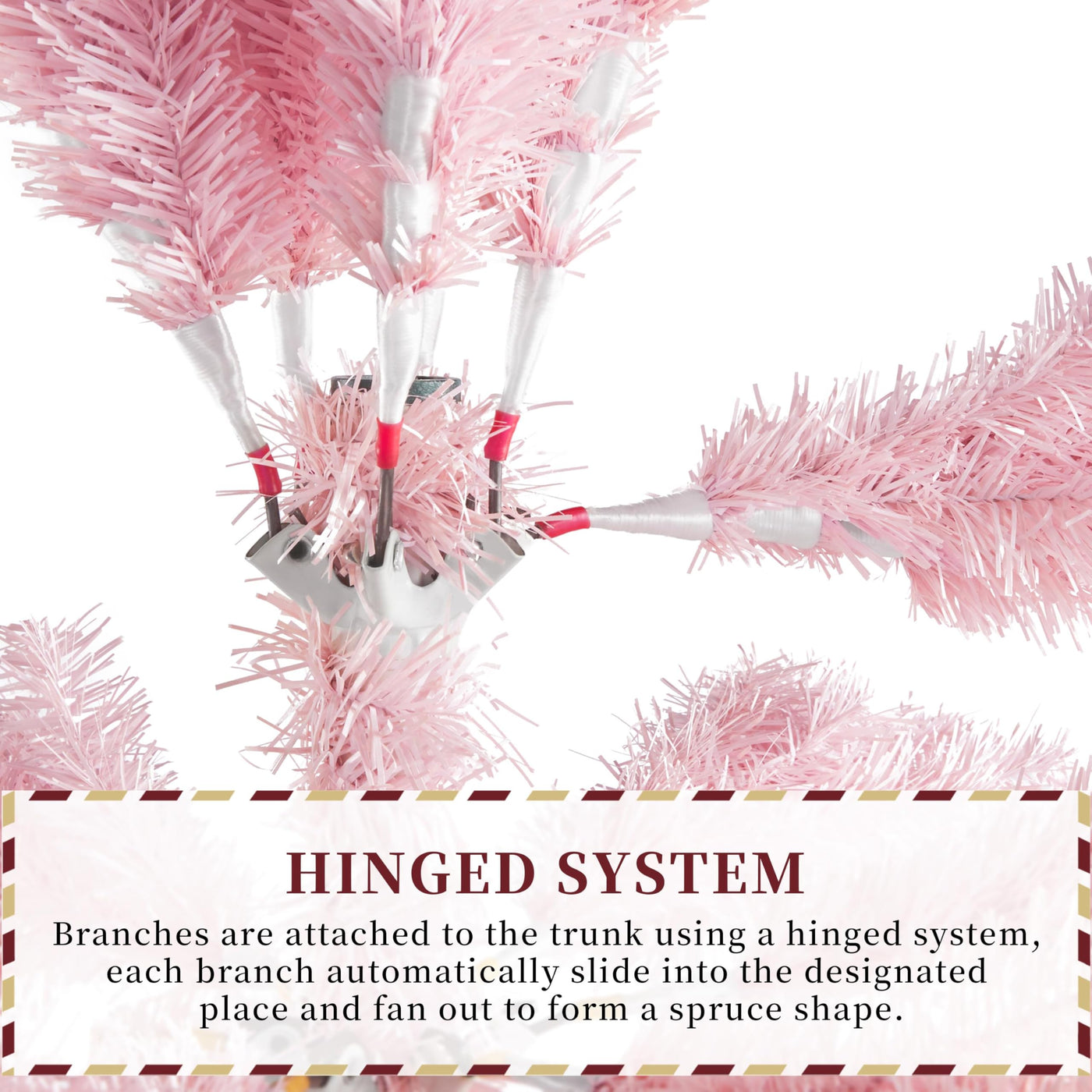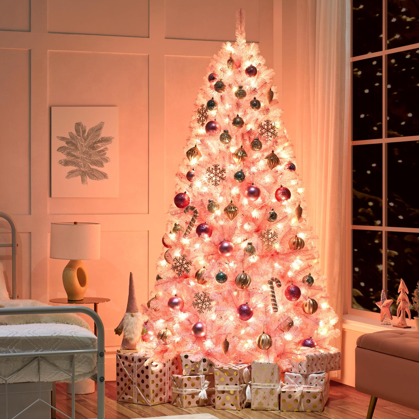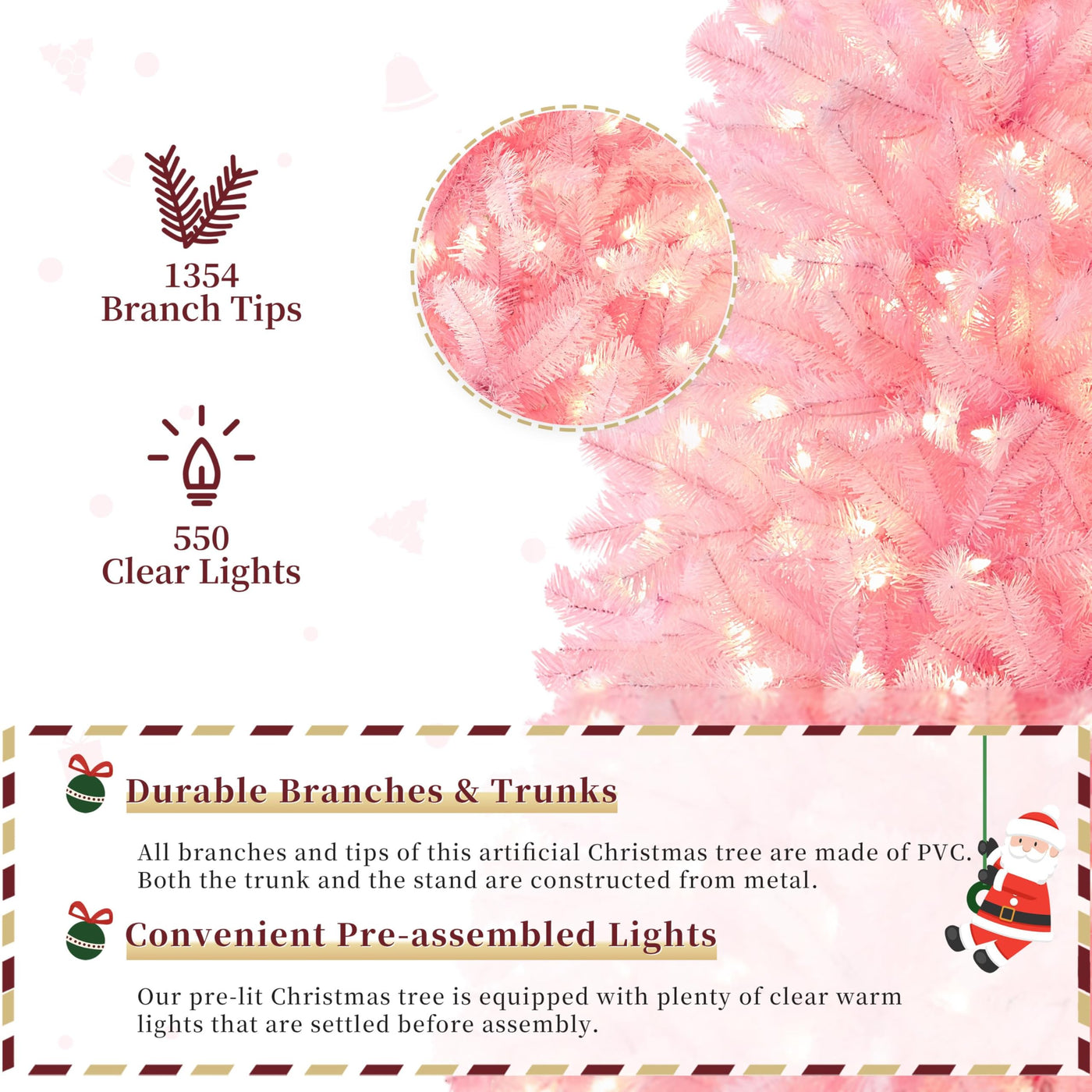 Quick overview:Ready to soak in the Christmas vibe? Our Christmas fir tree is ready to visit your lovely home. A natural lifelike appearance presents you with a full and fluffy feeling. Durable materials ensure this artificial Christmas tree is sturdy and can be used for a long time. Bendable branch tips are easy to lift up and down for pre-setting. Versatile design allows the whole family to enjoy a fun time decorating at their will. The tree body is divided into sections with labels, so the tree parts can be easily inserted into one another. PVC needles and the metal frame give you a very traditional feel both to the touch. This full Christmas tree can bring a joyful time to your loved ones in the serene winter.Specifications:Color: PinkMaterials: PVC, Powder-coated SteelType: Pre-lit Artificial Christmas Fir TreeTotal Tip Count: 1354Total Light Count: 550Light Tone: WarmAssembled Dimensions: 131 cm Dia. 228 cm H / 52 Dia. 90 HStand Dimensions: 55.5 cm Dia. 17 cm H / 22 Dia. 6.7 HItem Weight: 13.4 kg / 29.4 lbShipping Weight: 15.7 kg / 34.6 lbNote:1. Please allow for a margin of error in measurements due to the bendable tips. 2. It is a Christmas tree with no decoration except for the pre-fixed lights and branch tips.