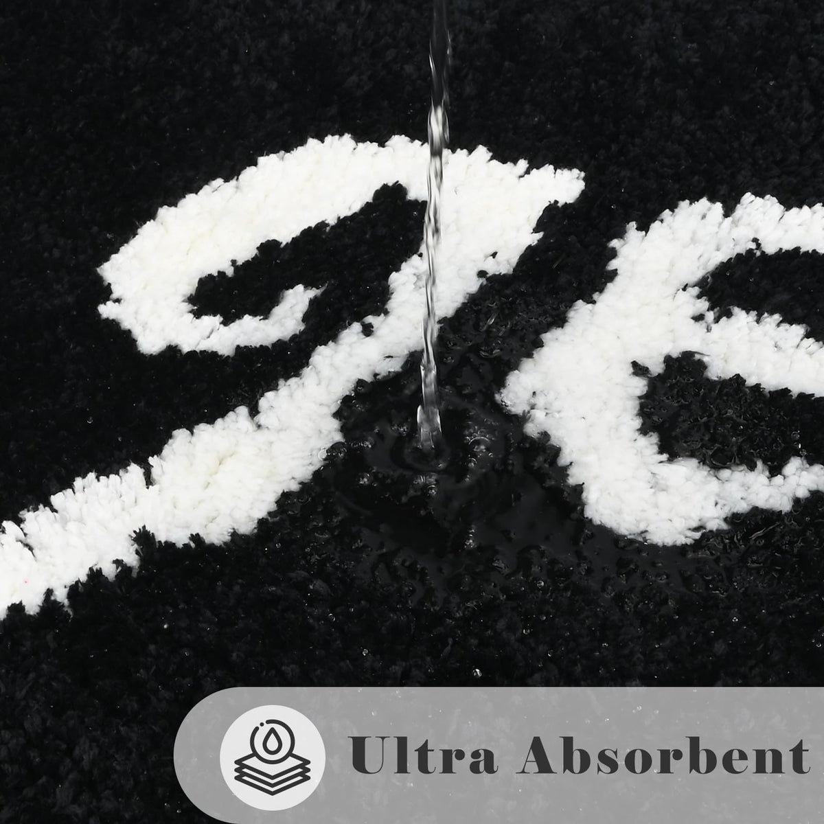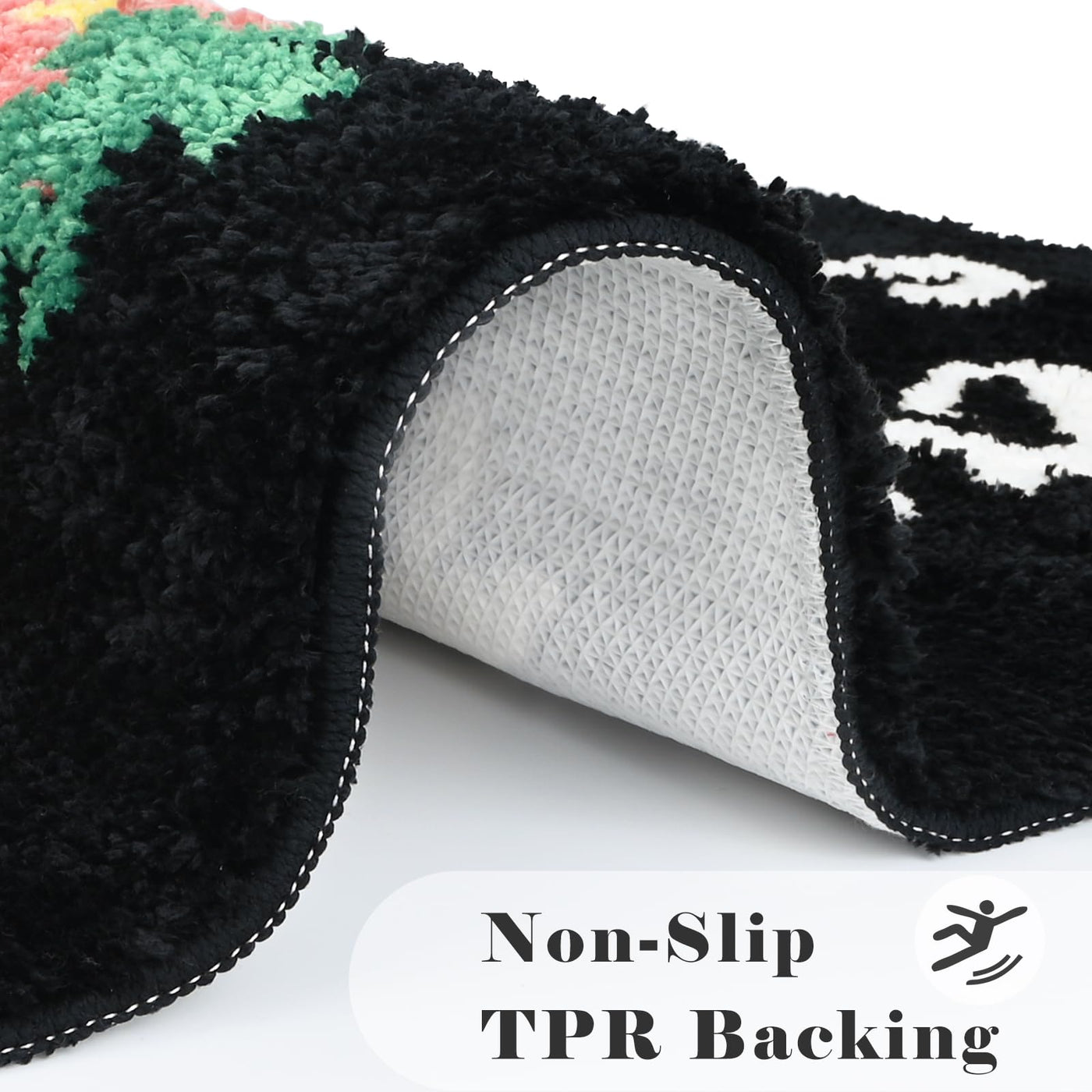 Yonchic Strawberry Bathroom Rugs, Cute Funny Decor Bath Mat, 20 X32 Black And White Mats, Water Absorbent Non Slip Rug For