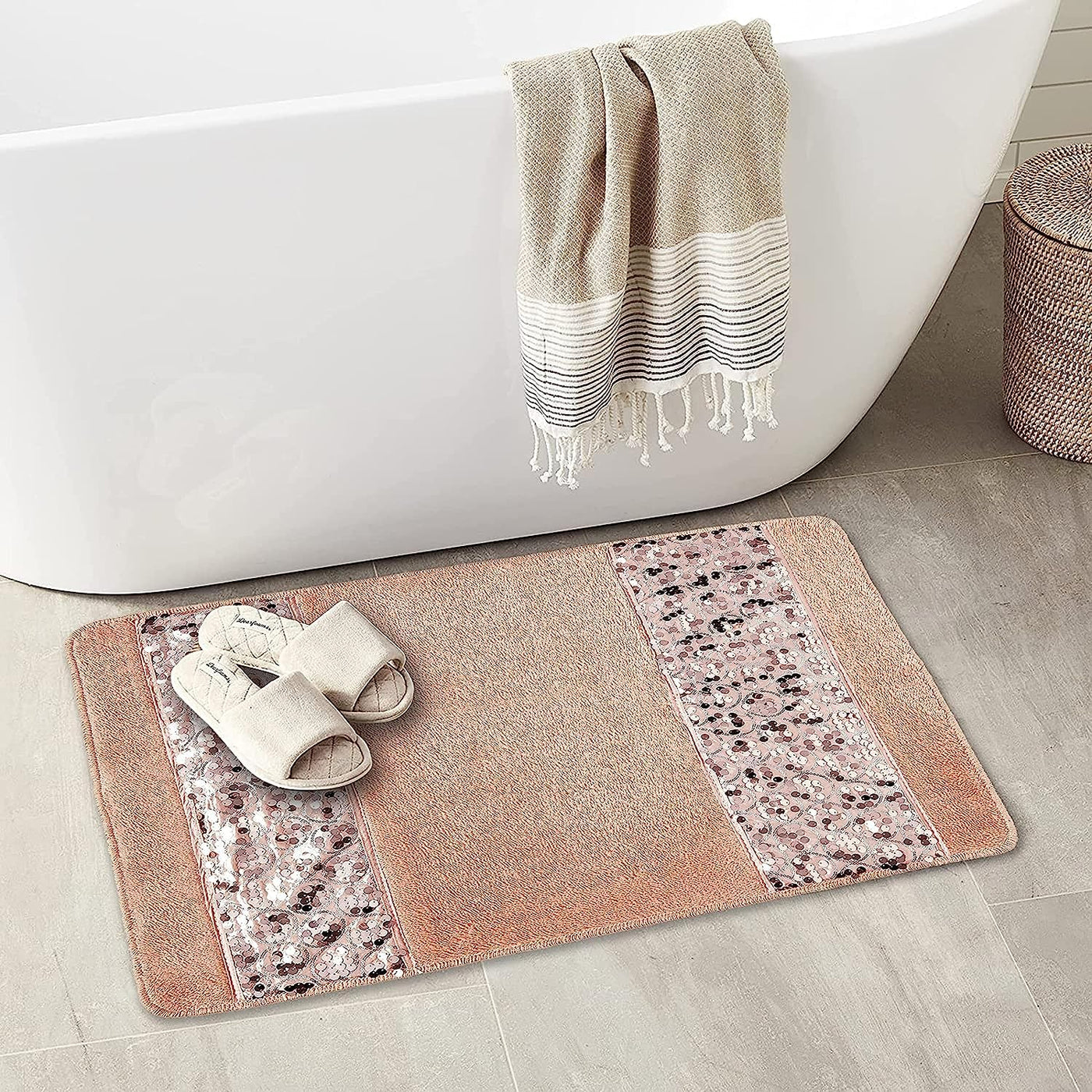 Zahari Home Sinatra Bathroom Rug Classic Bath Rug Stylish Bling Bath Mat, Size 32'' X 21'', Blush
