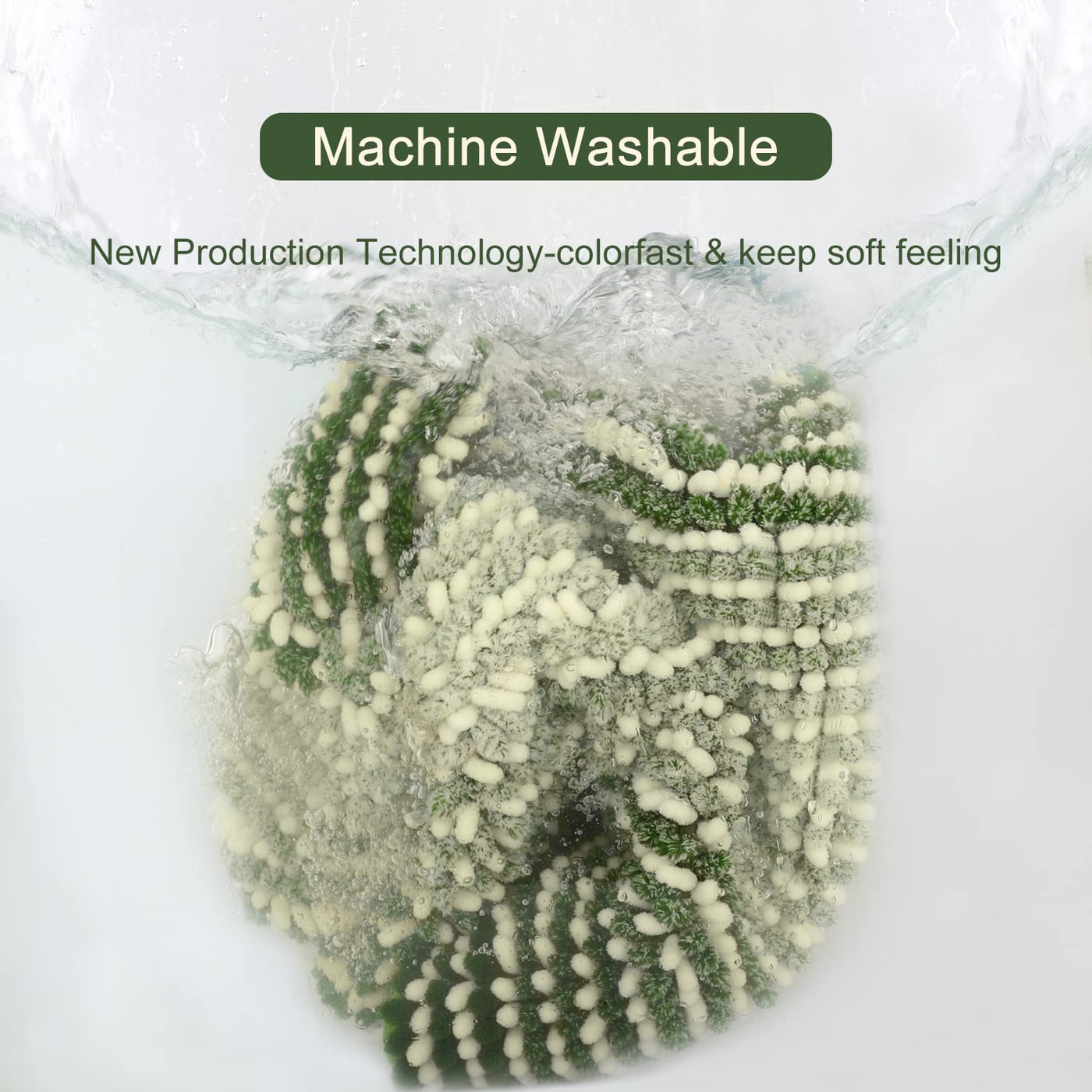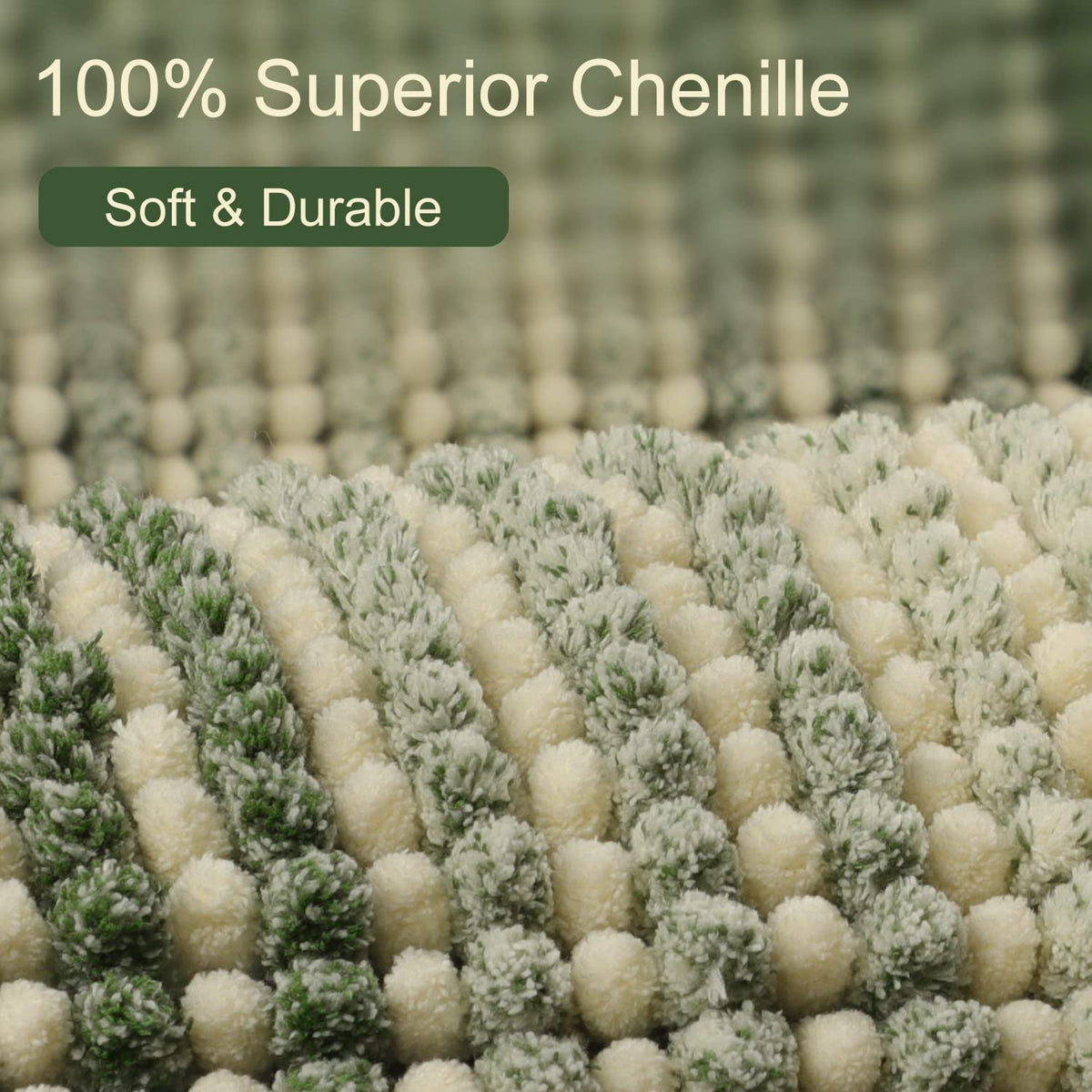 • Q: What material is the rug made from? A: The rug is made from 100% superior chenille yarn, which is known for its softness and absorbency.