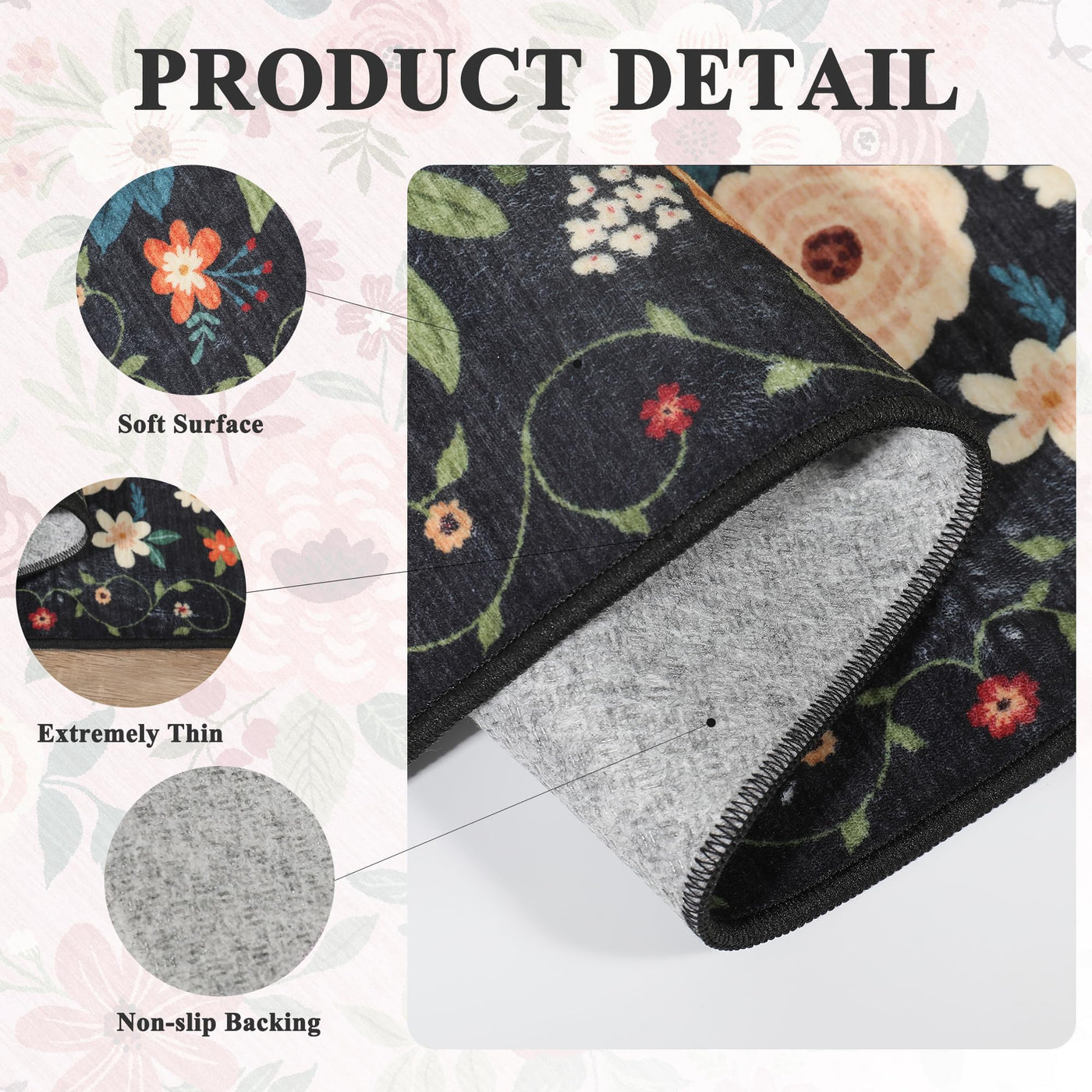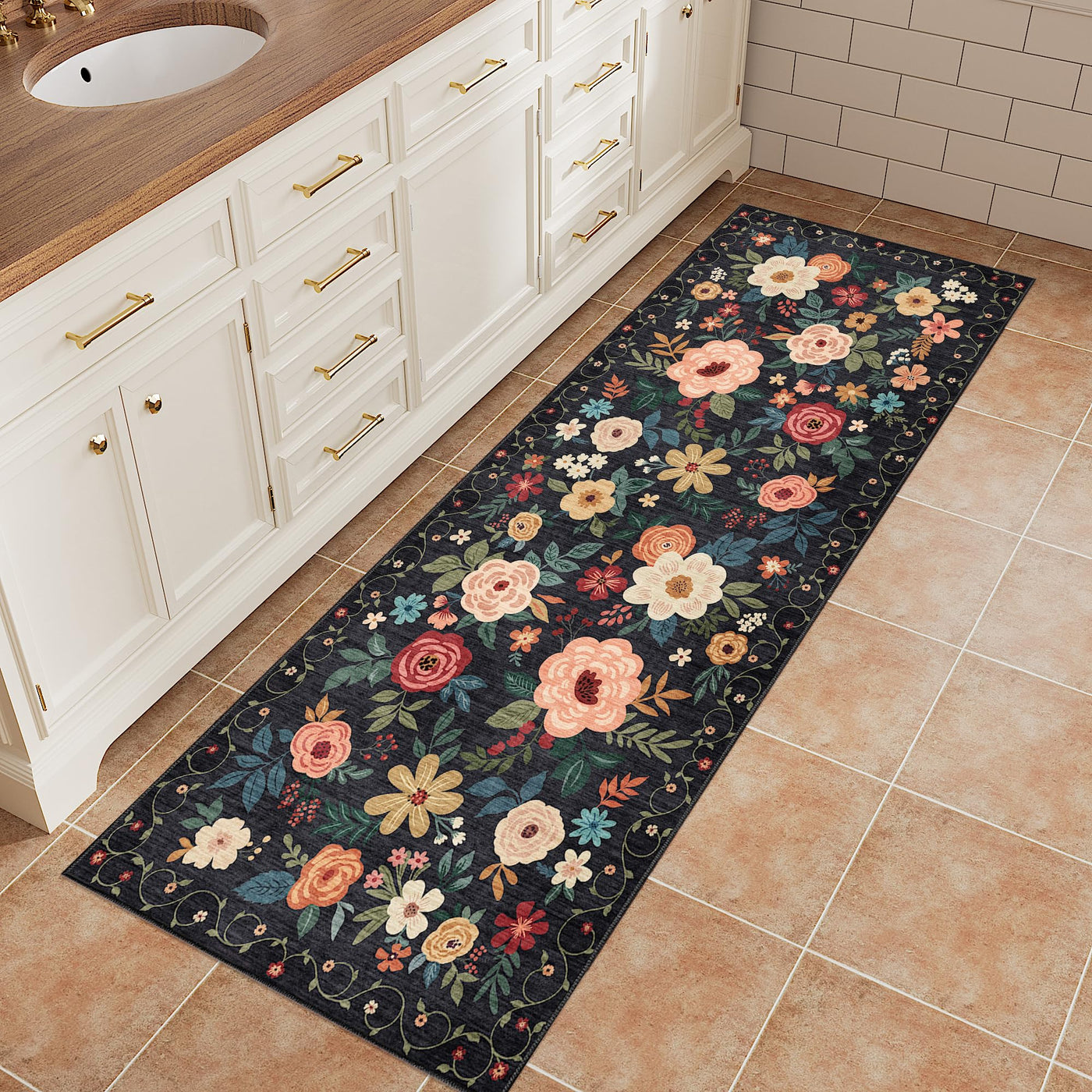 DUKINO 2x5 Runner Rug for Hallway, Washable Kitchen Floral Runner Rug with Non Slip Backing, Low Pile Soft Boho Carpet for Kitch