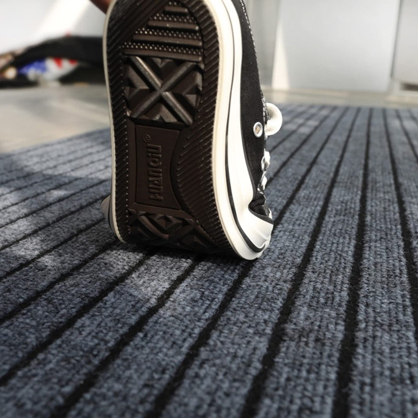 Wolpin Cotton Kitchen Floor Mat Runner With Anti Skid Backing Home Striped Anti Slip Rug (Grey, 40 X 120 Cm)