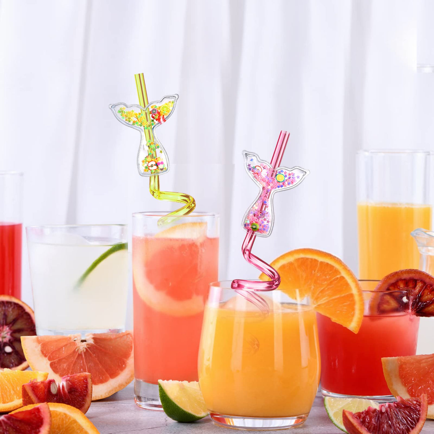 24 Glitter Mermaid Party Favors Mermaid Tail Drinking Straws For Mermaid Birthday Party Supplies With 2 Pcs Straws Cleaning Brus