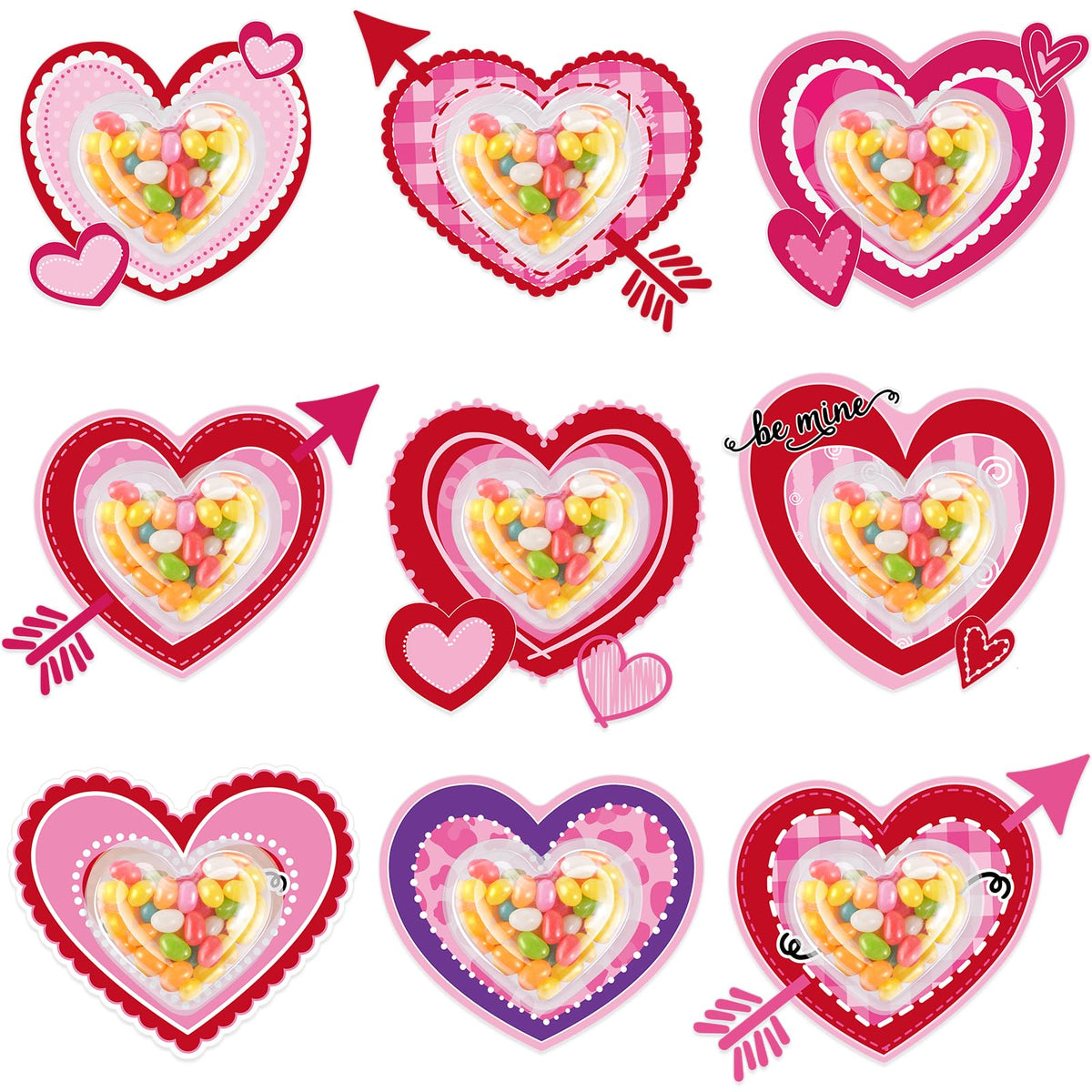 - Q: What is included in the 36 Set Valentines Day Cards package? A: The package includes 36 heart-shaped Valentines cards in 9 different styles, along with 36 plastic dome holders and tapes for easy assembly.