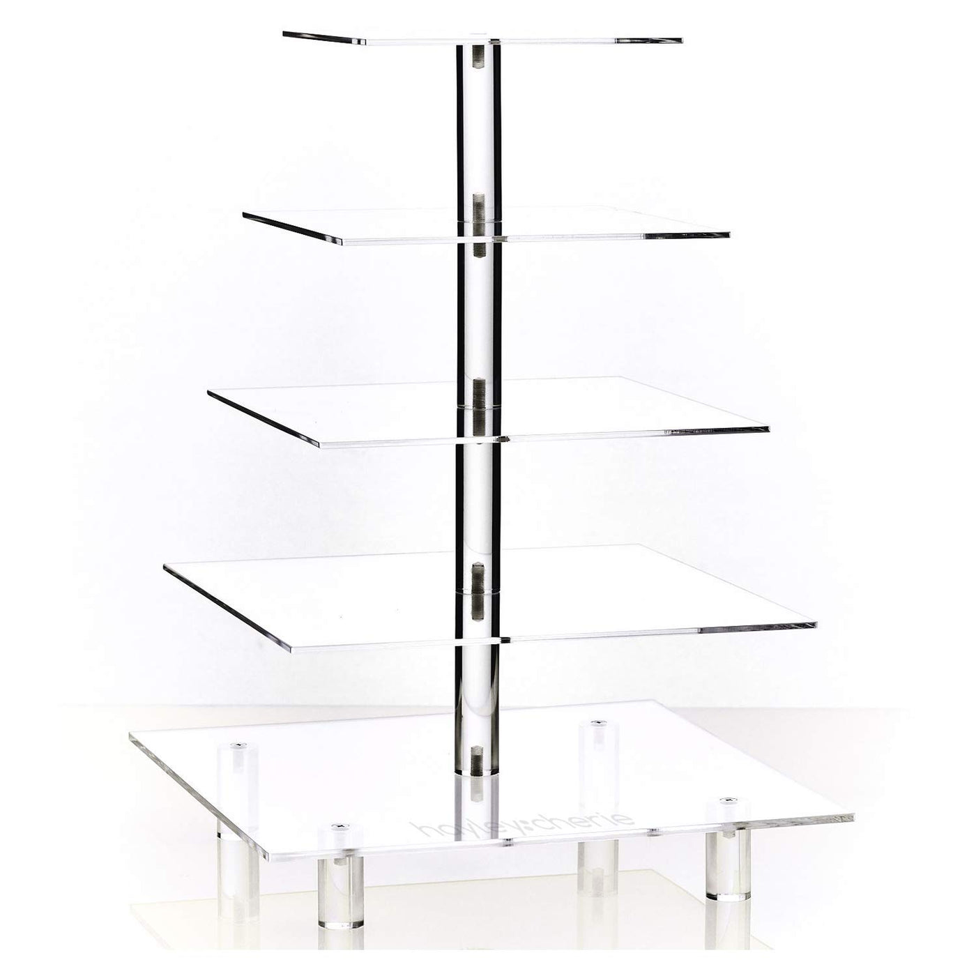 5 Tier Acrylic Cupcake Stand, Extra Thick 5Mm Base, Large Cupcake Tower, Multi Tiered Cake Stand Square Clear Holder For Dessert