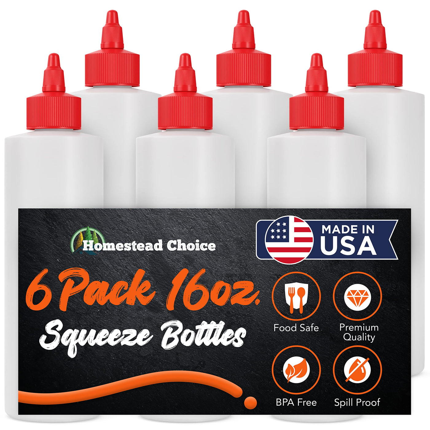 6 Pack Plastic Squeeze Bottles For Sauces 16 Oz Condiment Squeeze Bottles For Liquids Made In Usa Bpa Free Squirt Bottles With T