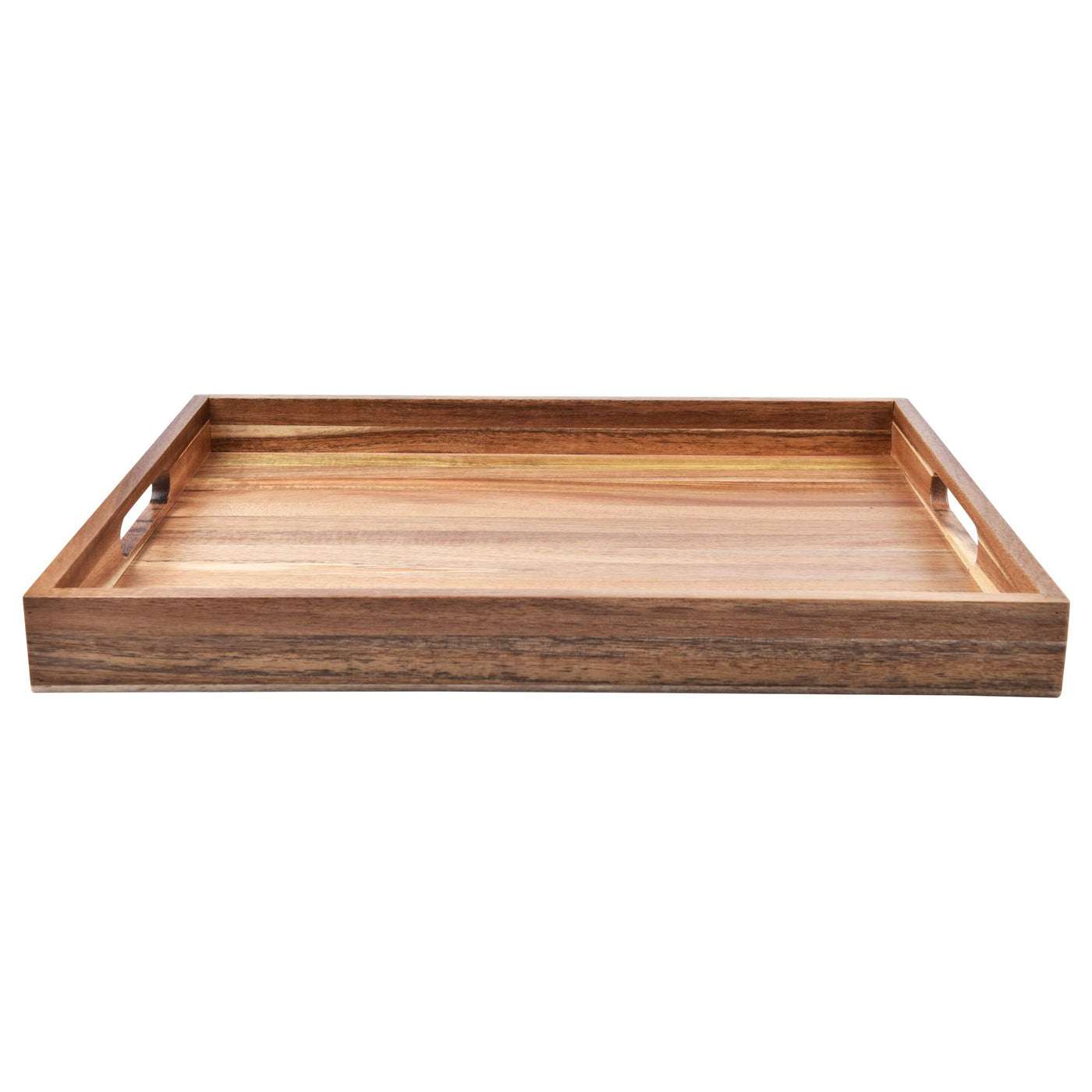 • Q: What are the dimensions of the Acacia Wood Serving Tray? A: The Acacia Wood Serving Tray measures 17.5 inches by 12 inches, making it an ideal size for various serving needs.