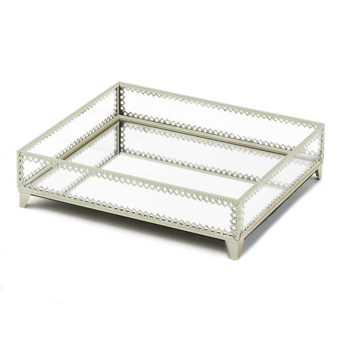 • Q: What is the purpose of the silver trim on the tray? A: The silver trim adds an elegant touch to the tray, enhancing its aesthetic appeal and making it a beautiful addition to home décor.