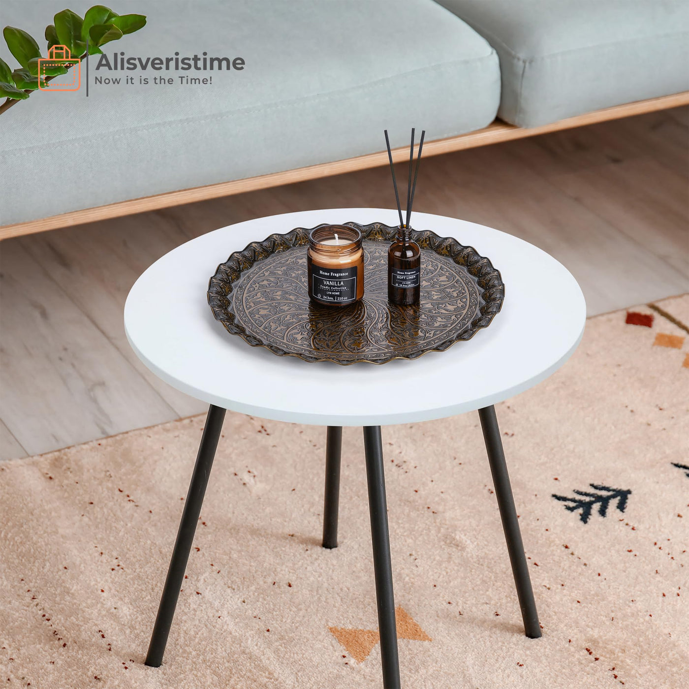 Alisveristime Turkish Ottoman Coffee Tea Serving Tray - 11.8 Inches, Wavy Zamac Tray With Traditional Motifs, Available In Five