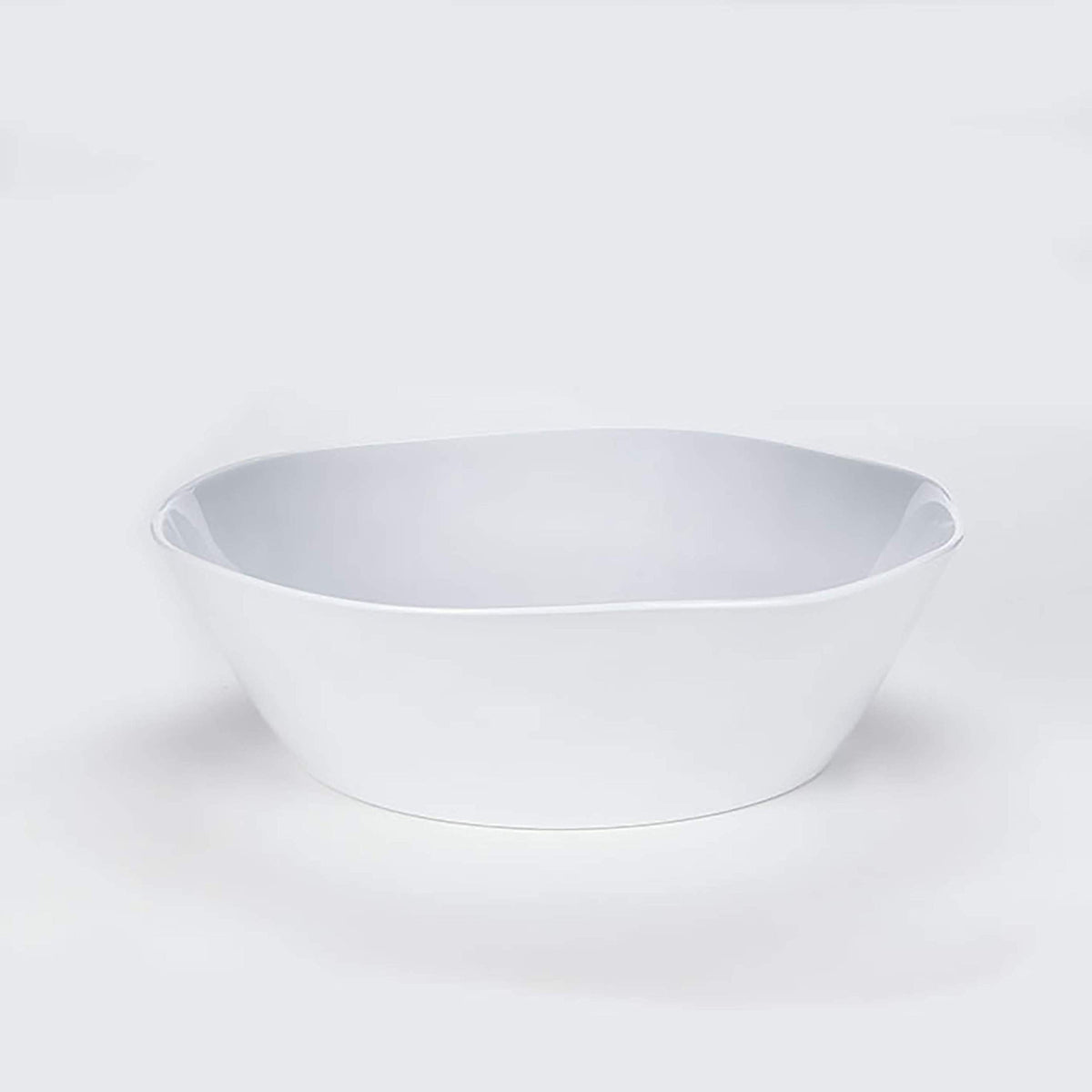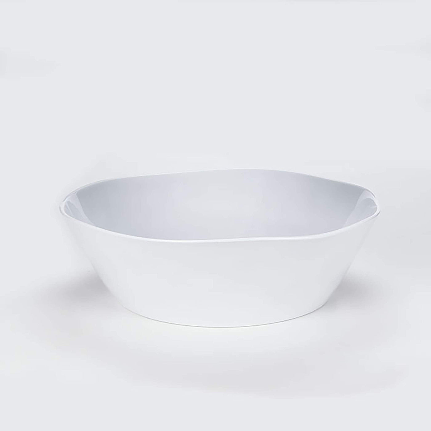 • Q: What material is the serving bowl made from? A: This serving bowl is made from artisan-quality melamine, which is known for its durability and long service life.