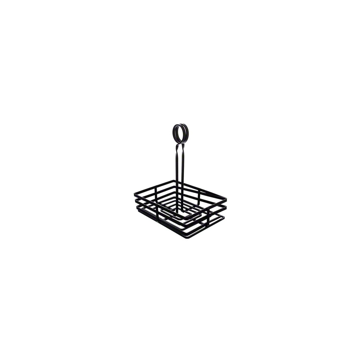 American Metalcraft Fwc68 Rectangular Wrought Iron Condiment Rack Basket With Display Handle, 6'' X 8'', Black