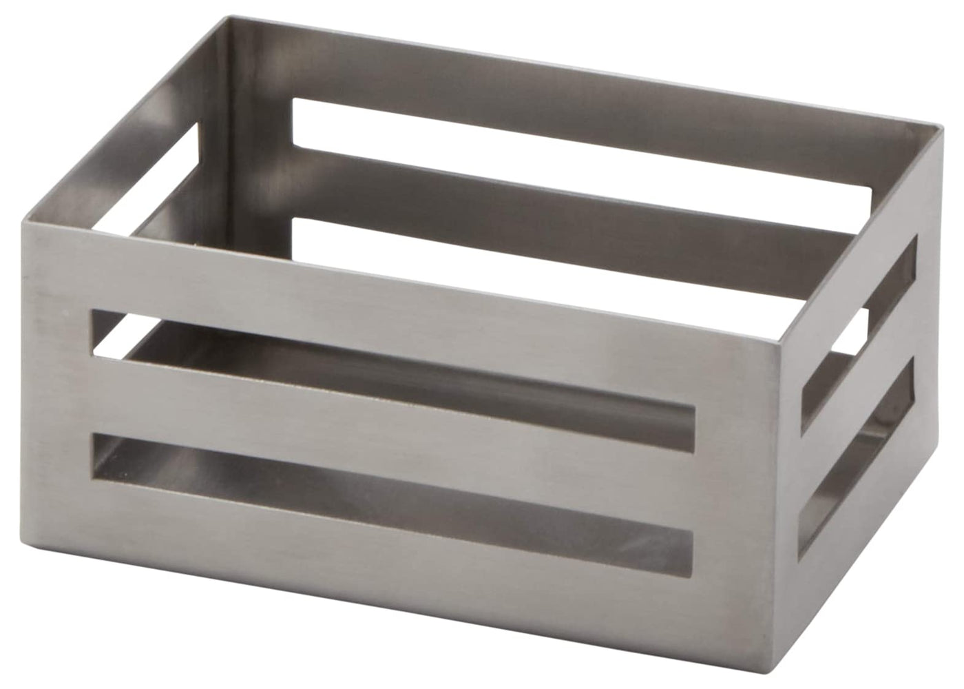• Q: What material is the sugar packet crate made from? A: The sugar packet crate is constructed from stainless steel with a satin finish, providing both durability and a sleek appearance.