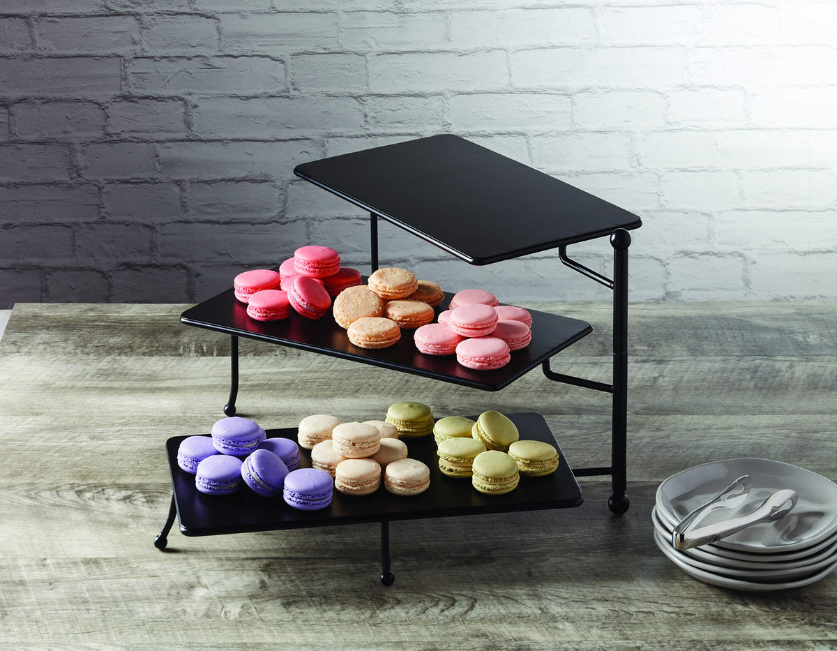 American Metalcraft Tprec3 Rectangular Three-Tier Stand, Foldable, Black