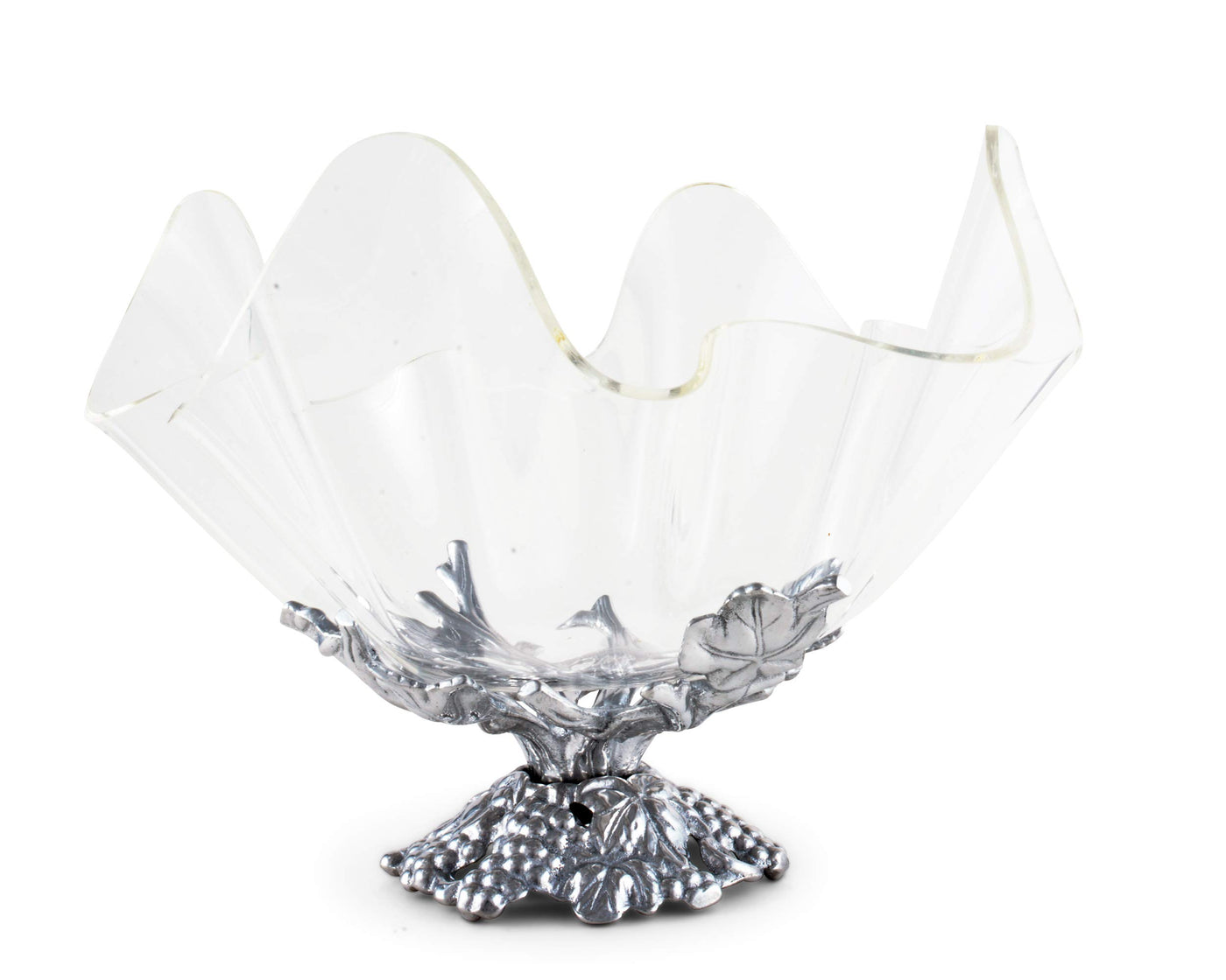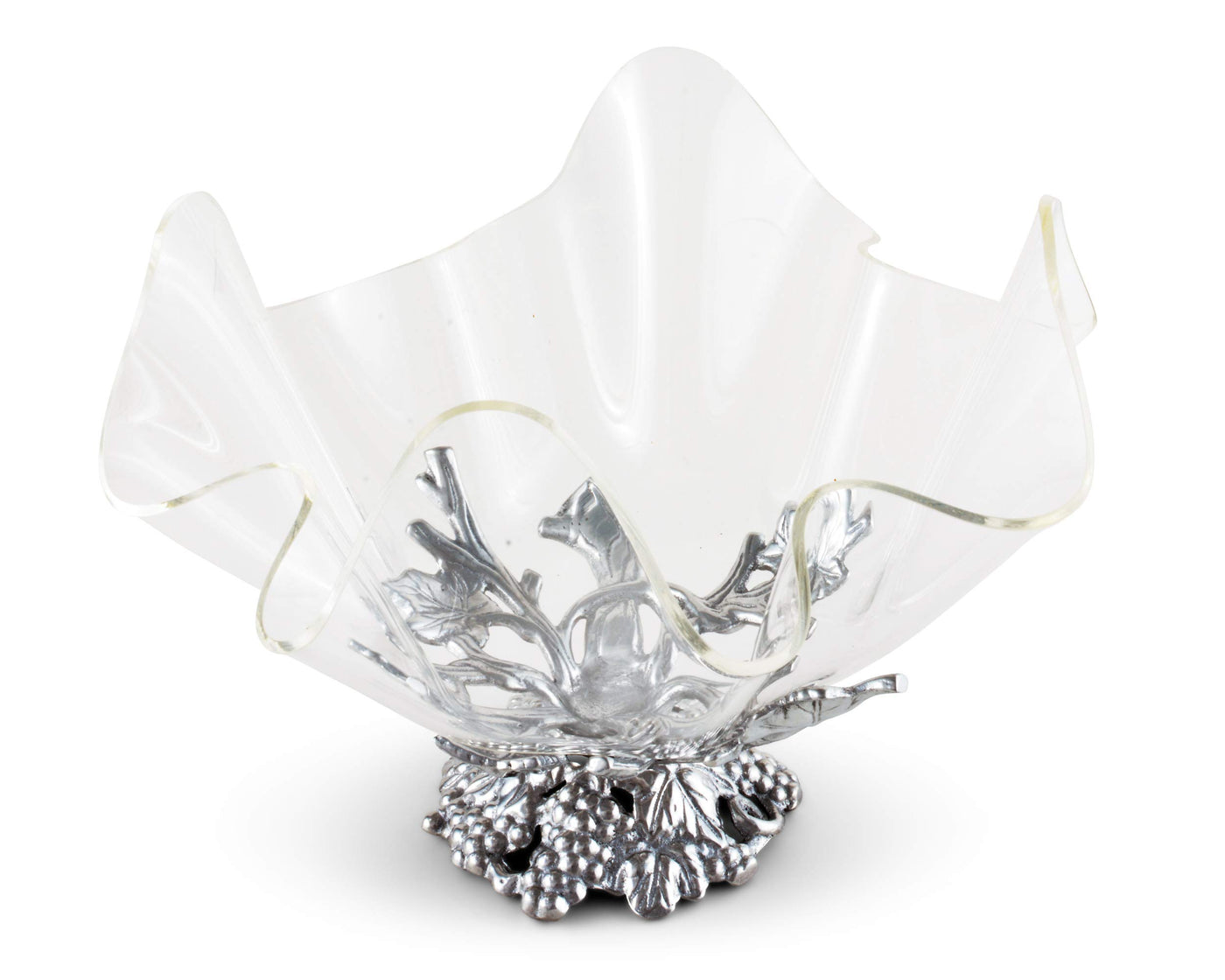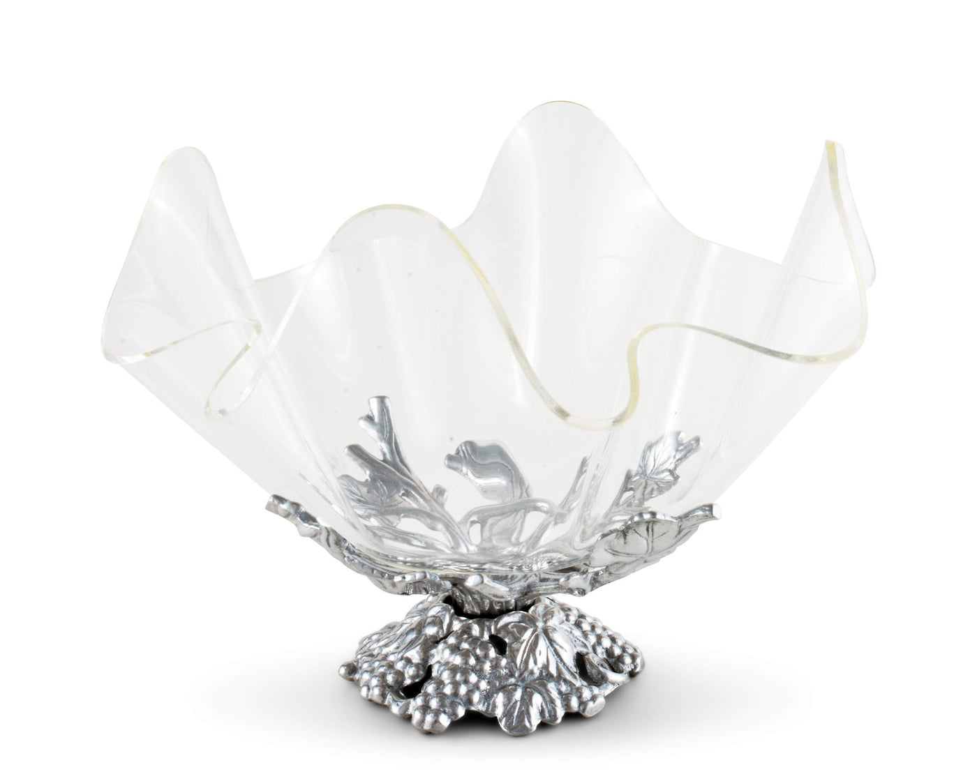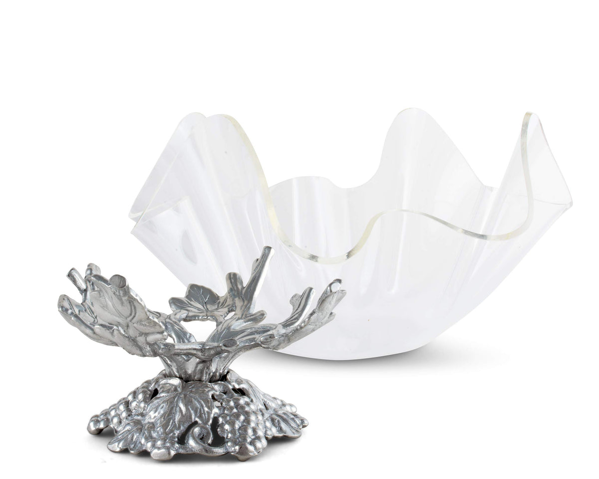 Arthur Court Acrylic Bowl Grapevine Stand Pattern Sand Casted In Aluminum With Artisan Quality Hand Polished Tarnish Free Stand
