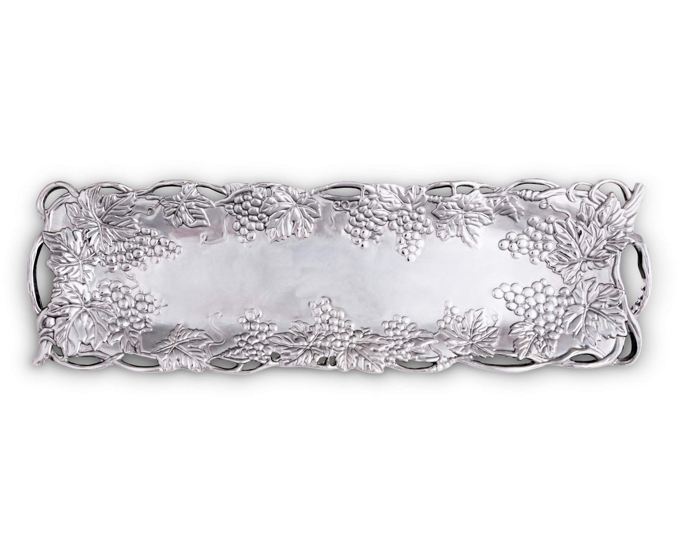 Arthur Court Metal Oblong Serving Tray Grape Pattern Sand Casted In Aluminum With Artisan Quality Hand Polished Designs Tarnish