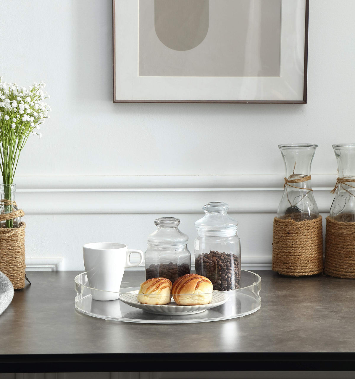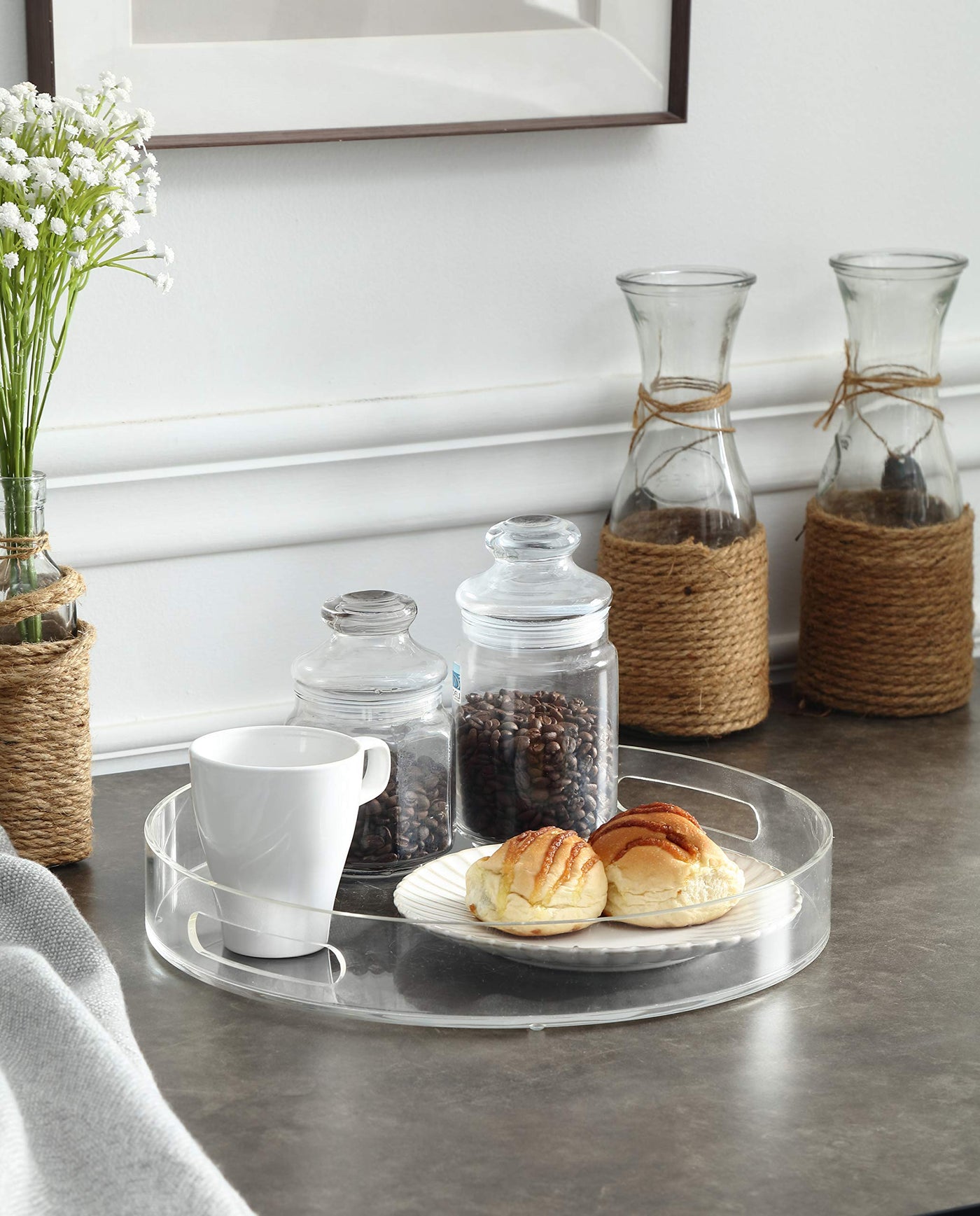 Artmaze Clear Sturdy Acrylic Round Tray With Handles,Spill Proof,For Kitchen (14 Inch)