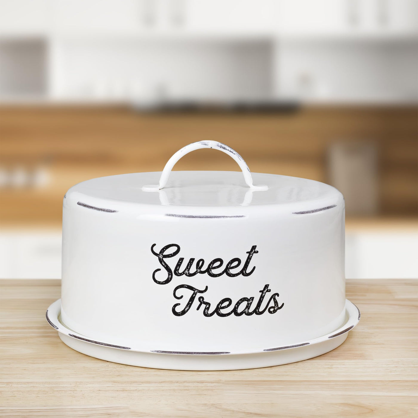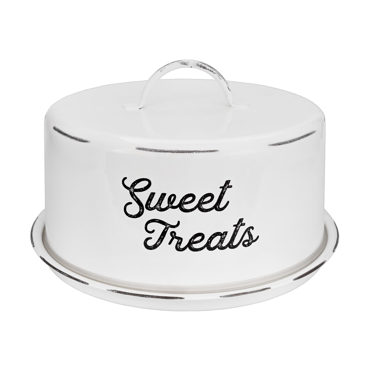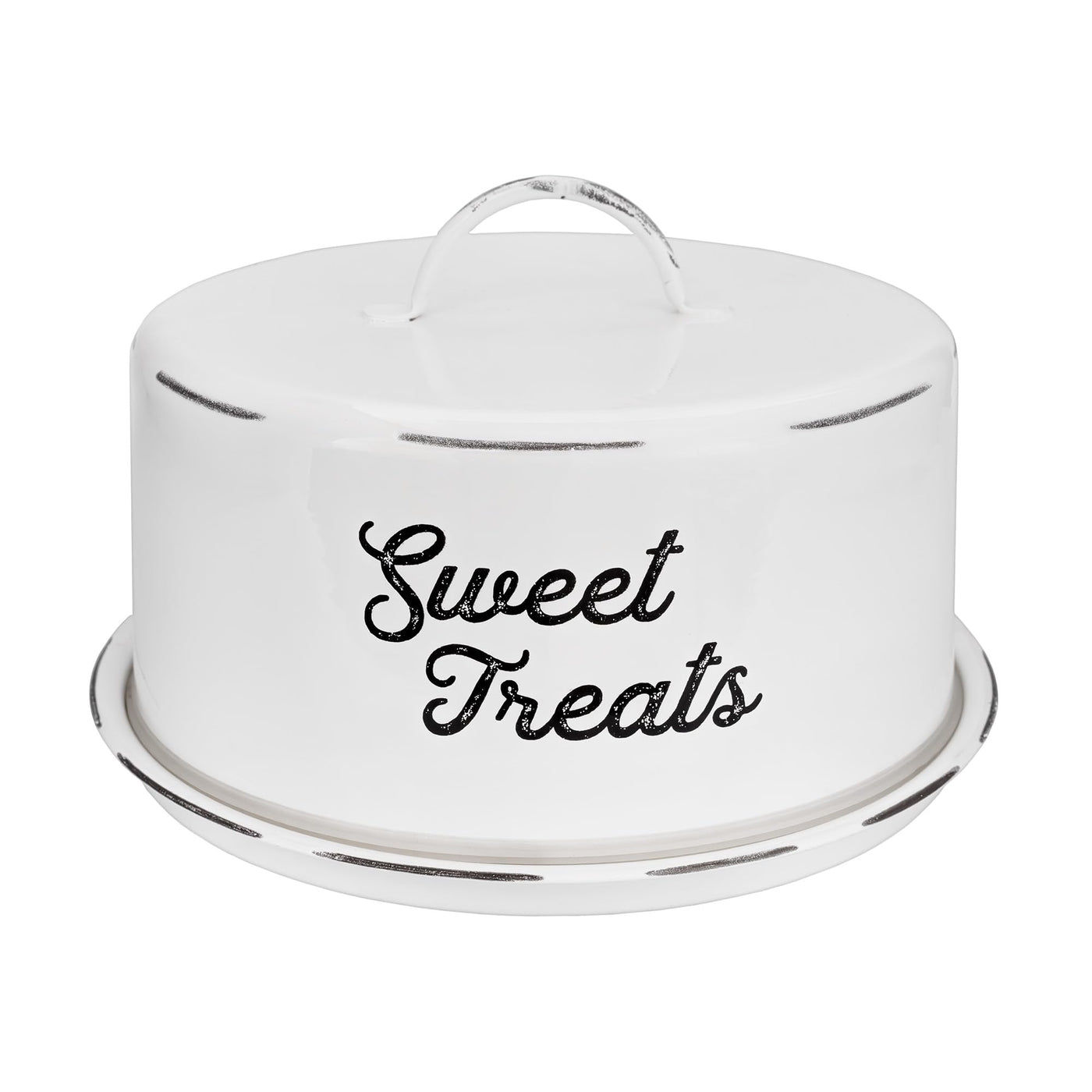 Auldhome Enamelware White Cake Cover; Rustic Decorative Cake Plate With Domed Lid