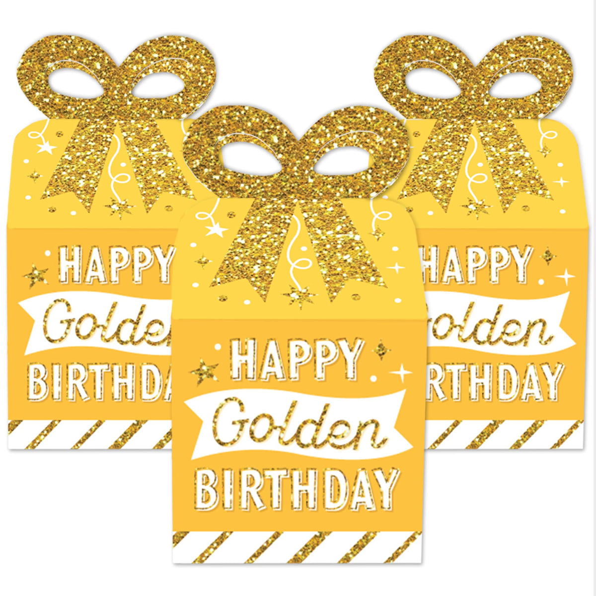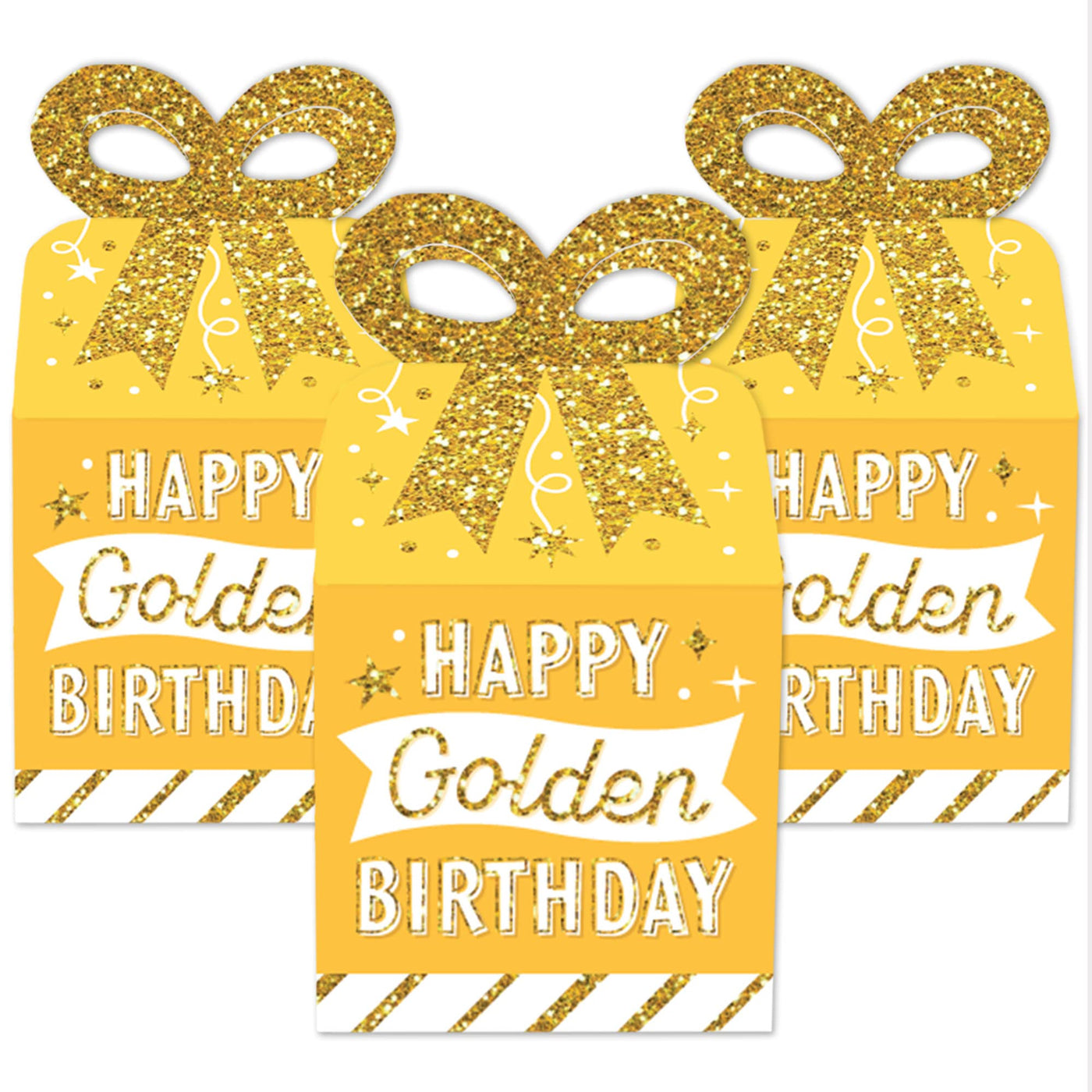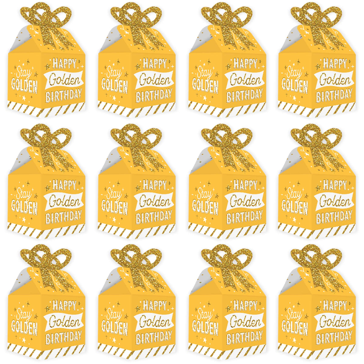 Big Dot Of Happiness Golden Birthday - Square Favor Gift Boxes - Happy Birthday Party Bow Boxes - Set Of 12