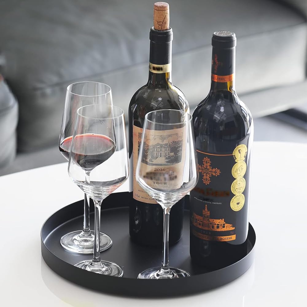 Black Round Metal Candle Holder Tray, Decorative Serving Tray For Modern Farmhouse Home Decorations (11.8'')