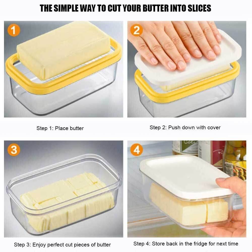 - Q: What is the design of the butter storage box? A: The butter storage box features a sleek and transparent design, allowing you to easily see the contents inside.