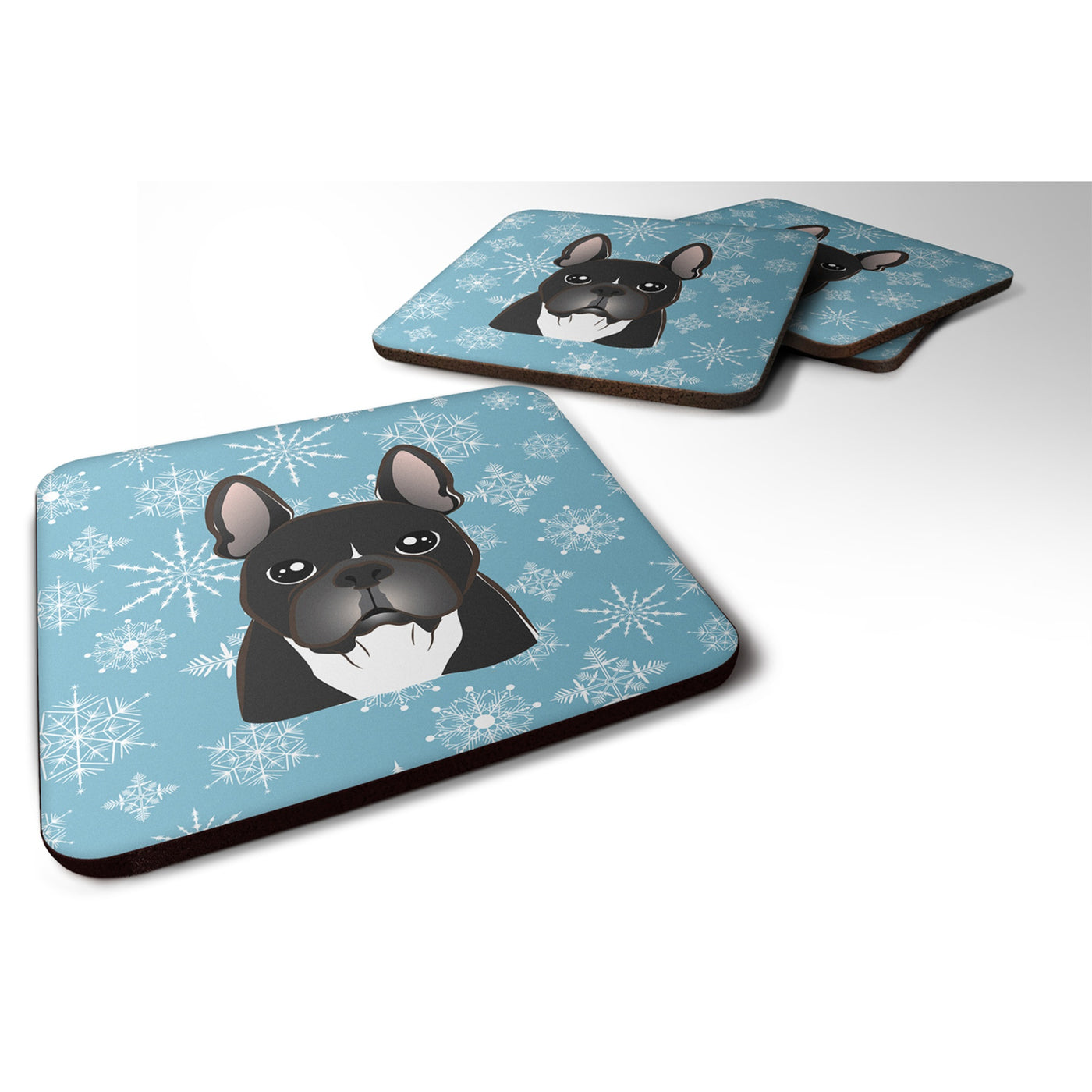 'Caroline's Treasures BB1661FC Snowflake French Bulldog Foam Coasters (Set of 4) 3.5'''' Multicolor''