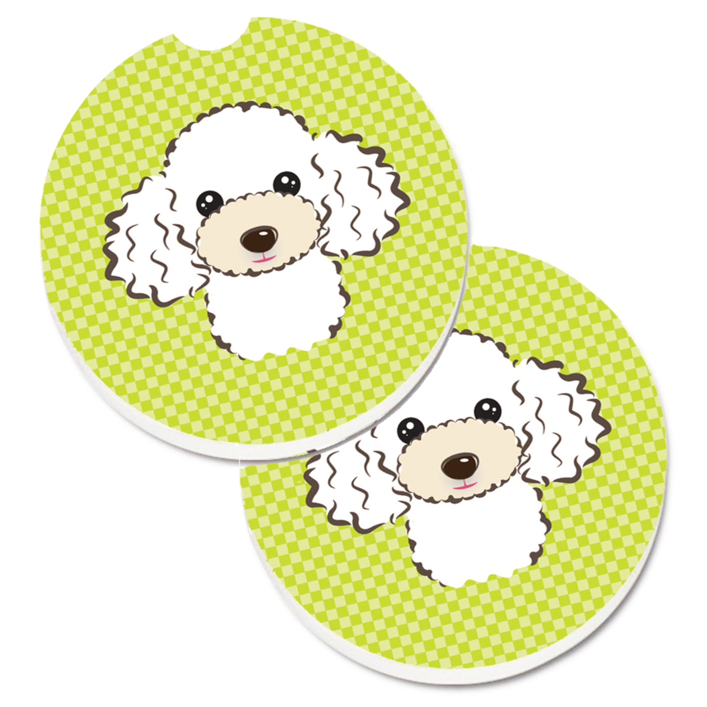 'Caroline's Treasures Checkerboard Lime green White Poodle Set of 2 Cup Holder Car Coasters BB1319CARC 2.56 Multicolor''