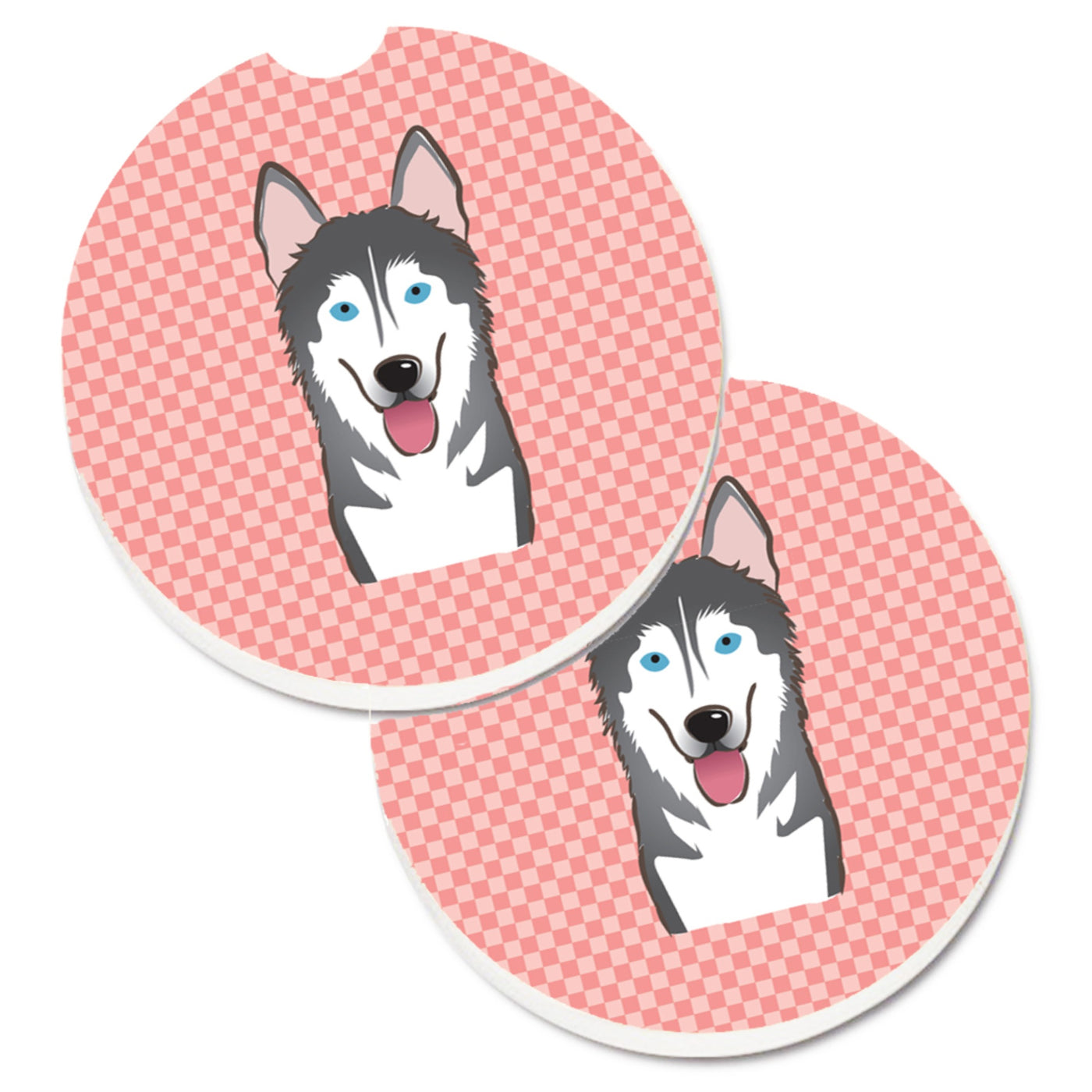 'Caroline's Treasures Checkerboard Pink Alaskan Malamute Set of 2 Cup Holder Car Coasters BB1218CARC 2.56 Multicolor''