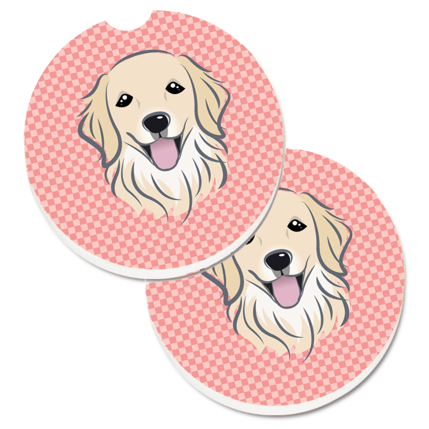 'Caroline's Treasures Checkerboard Pink Golden Retriever Set of 2 Cup Holder Car Coasters BB1205CARC 2.56 Multicolor''