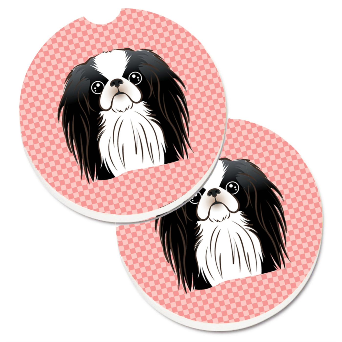 'Caroline's Treasures Checkerboard Pink Japanese Chin Set of 2 Cup Holder Car Coasters BB1230CARC 2.56 Multicolor''