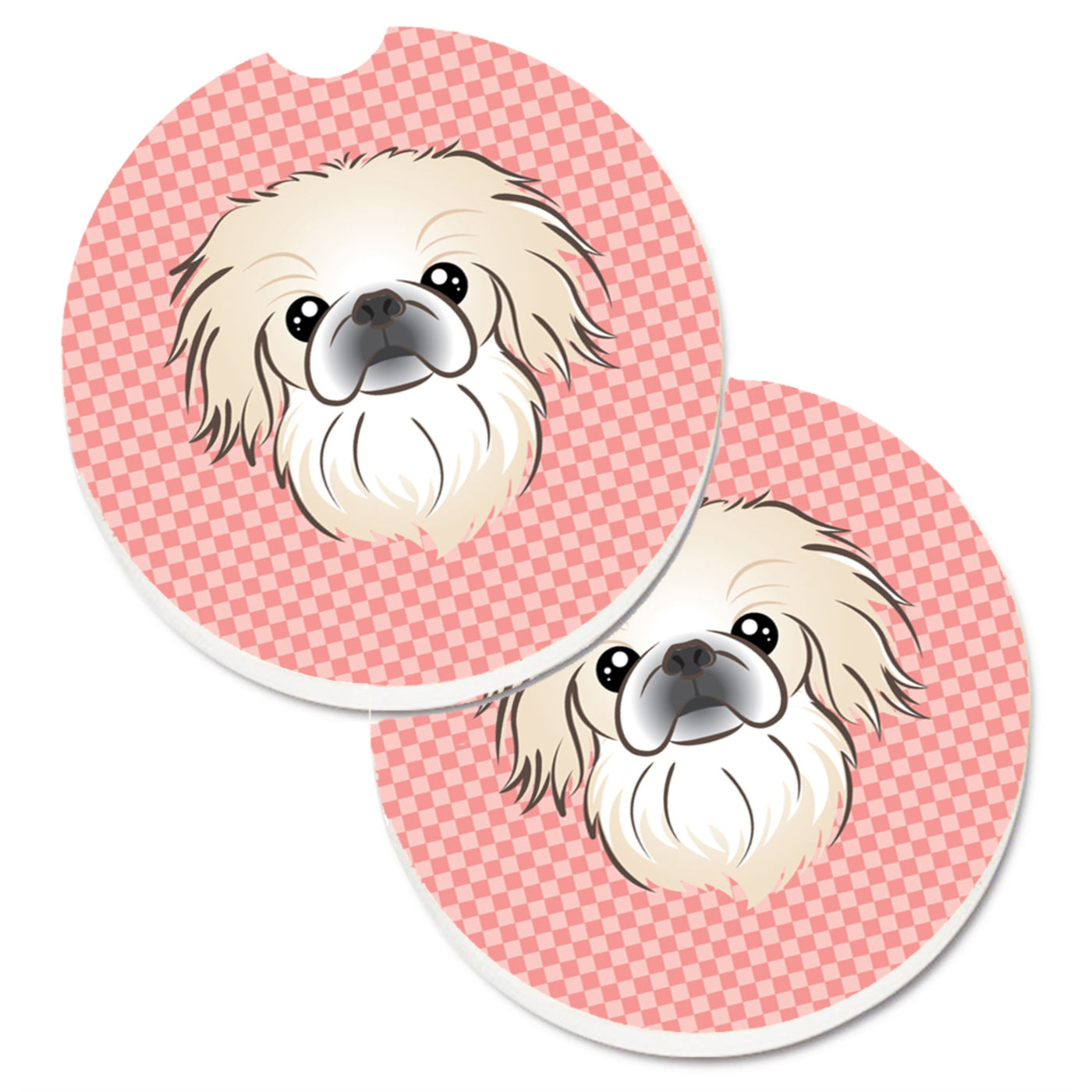 'Caroline's Treasures Checkerboard Pink Pekingese Set of 2 Cup Holder Car Coasters BB1221CARC 2.56 Multicolor''