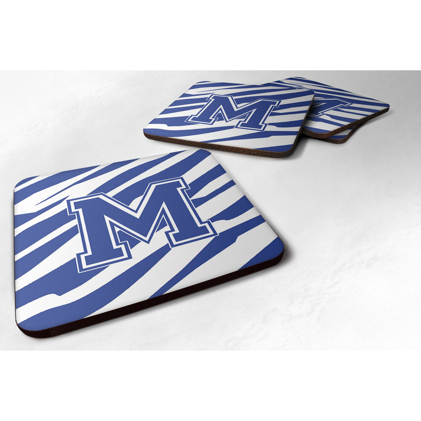 'Caroline's Treasures CJ1034-MFC Monogram-Tiger Stripe Blue and White Foam Coasters (Set of 4) Initial Letter M 3.5'''' H x 3.5'''' W Multicolor''