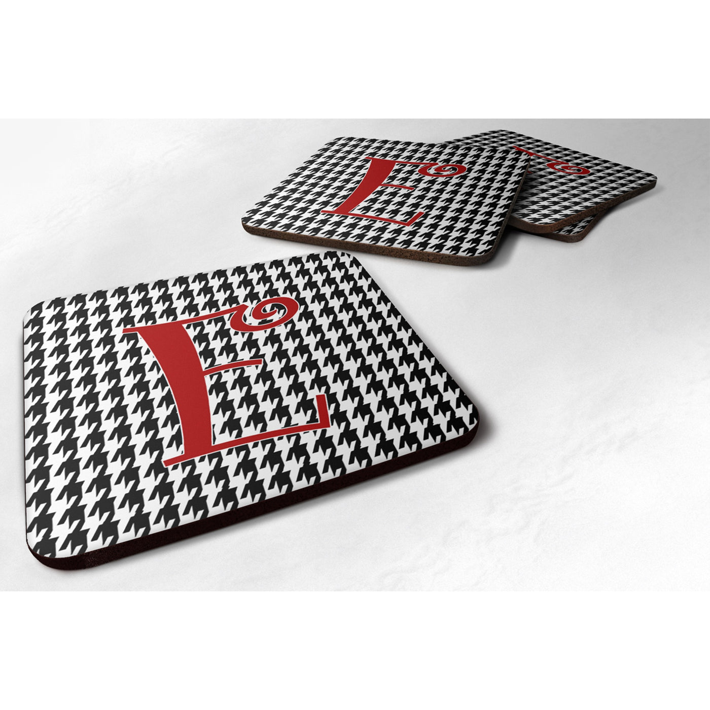 'Caroline's Treasures CJ1035-EFC Monogram-Houndstooth Black Foam Coasters (Set of 4) Initial Letter E 3.5'''' H x 3.5'''' W Multicolor''