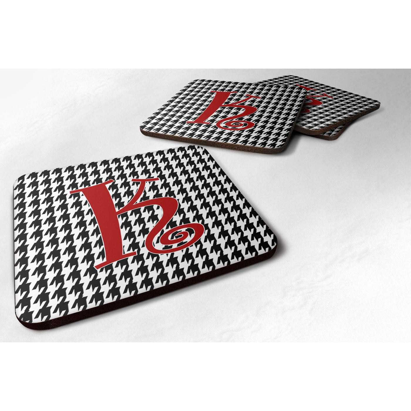 'Caroline's Treasures CJ1035-KFC Monogram-Houndstooth Black Foam Coasters (Set of 4) Initial Letter K 3.5'''' H x 3.5'''' W Multicolor''