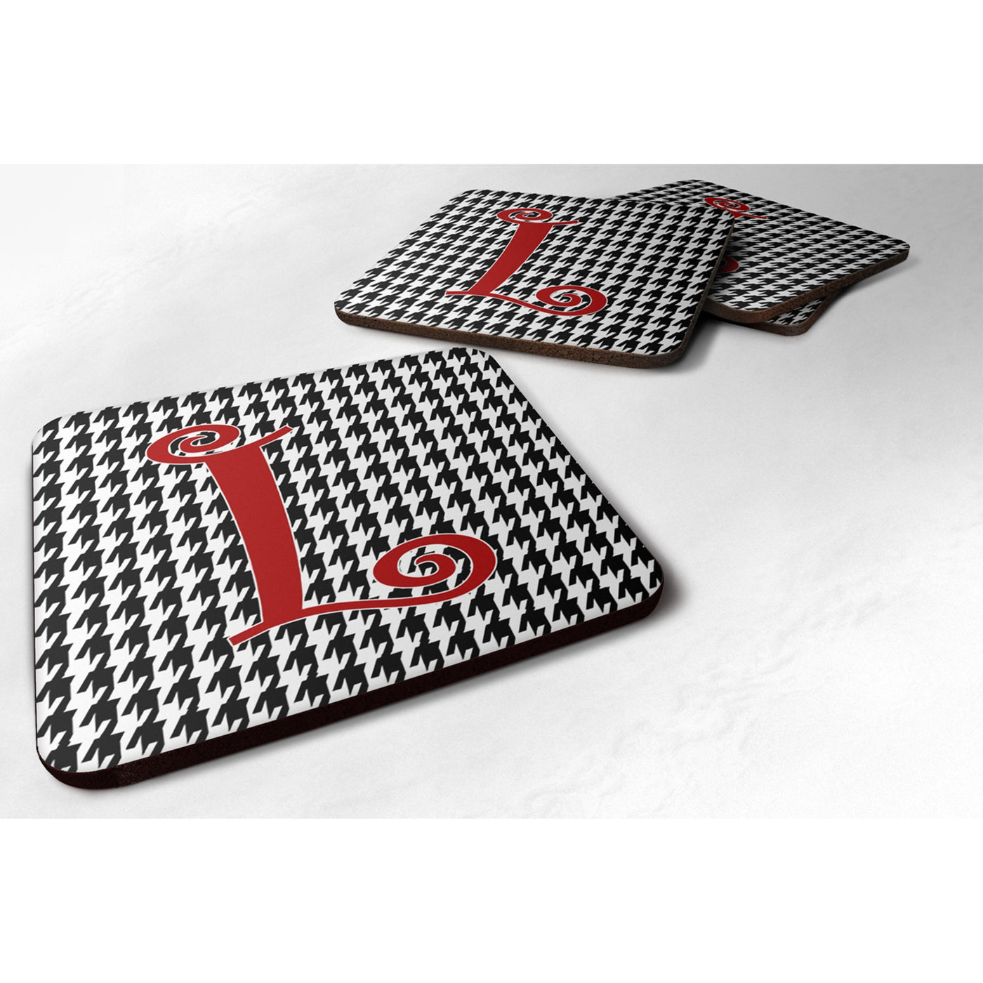 'Caroline's Treasures CJ1035-LFC Monogram-Houndstooth Black Foam Coasters (Set of 4) Initial Letter L 3.5'''' H x 3.5'''' W Multicolor''