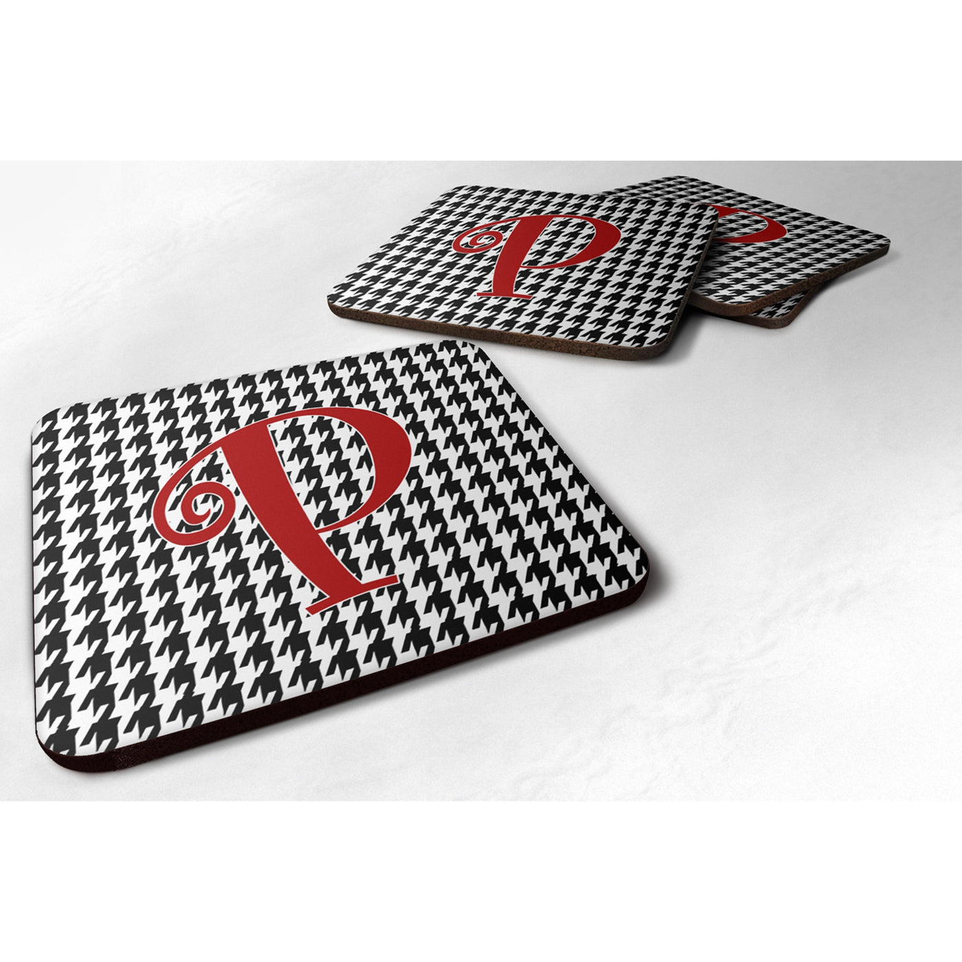 'Caroline's Treasures CJ1035-PFC Monogram-Houndstooth Black Foam Coasters (Set of 4) Initial Letter P 3.5'''' H x 3.5'''' W Multicolor''