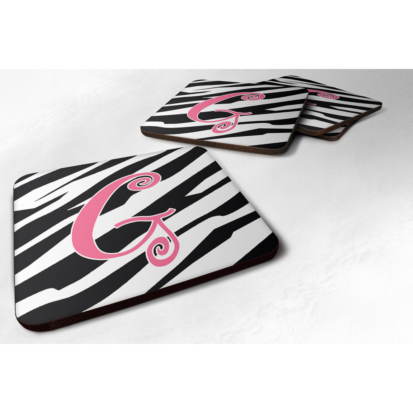 'Caroline's Treasures CJ1037-GFC Monogram-Zebra Stripe and Pink Foam Coasters (Set of 4) Initial Letter G 3.5'''' H x 3.5'''' W Multicolor''