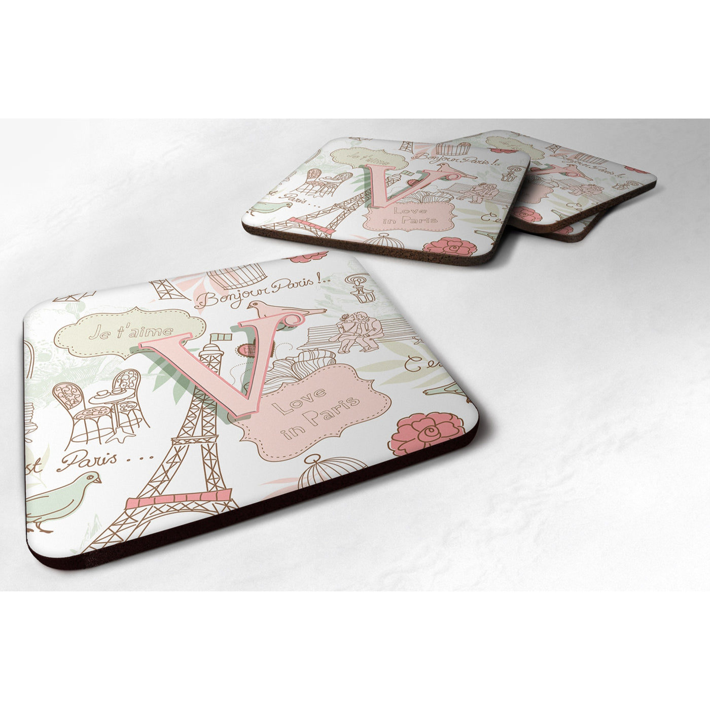 Model No : Cj2002-Vfc''Caroline'S Treasures Cj2002-Vfc Letter V Love In Paris Pink Foam Coasters (Set Of 4) 3.5'''' Multicolor''Brand : Caroline'S Treasures