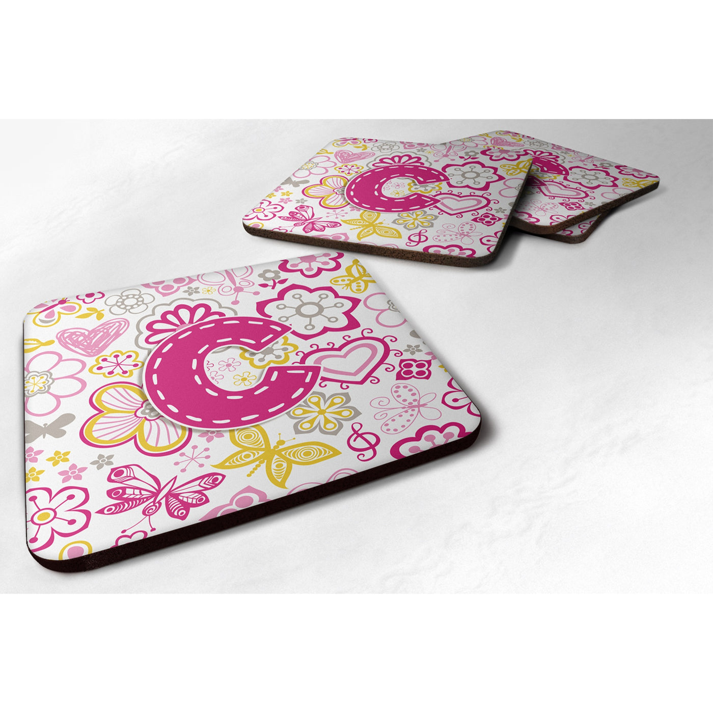 'Caroline's Treasures CJ2005-CFC Letter C Flowers and Butterflies Pink Foam Coasters (Set of 4) 3.5'''' Multicolor''