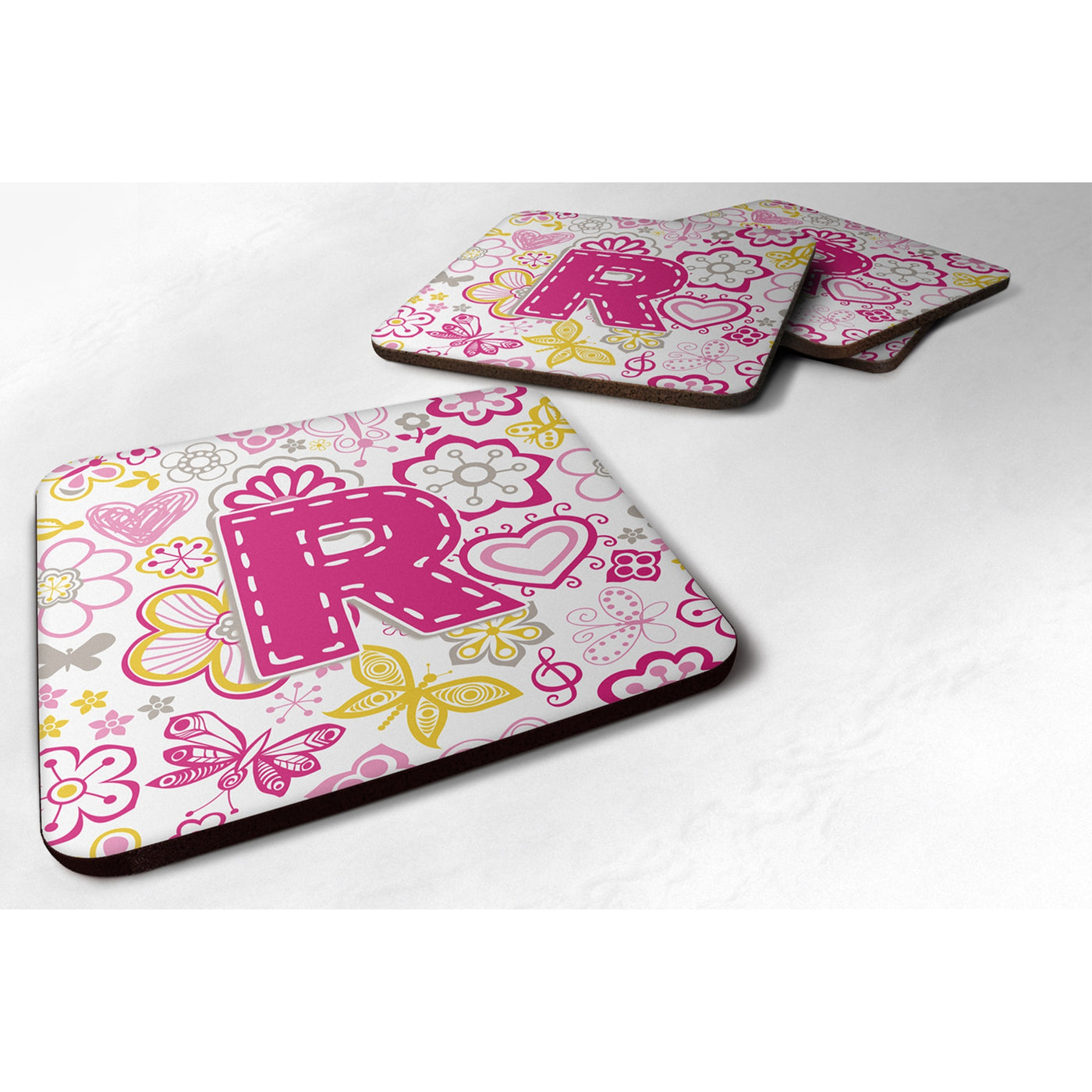 'Caroline's Treasures CJ2005-RFC Letter R Flowers and Butterflies Pink Foam Coasters (Set of 4) 3.5'''' Multicolor''