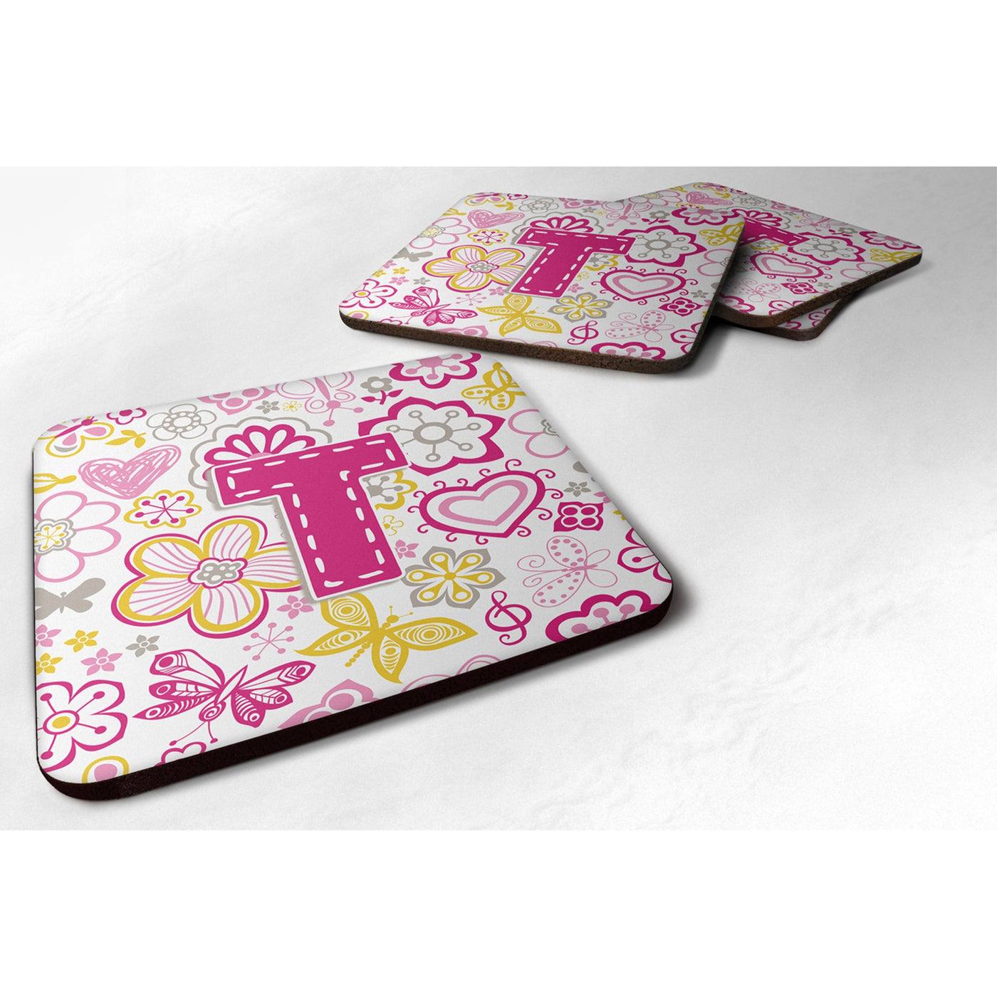 'Caroline's Treasures CJ2005-TFC Letter T Flowers and Butterflies Pink Foam Coasters (Set of 4) 3.5'''' Multicolor''