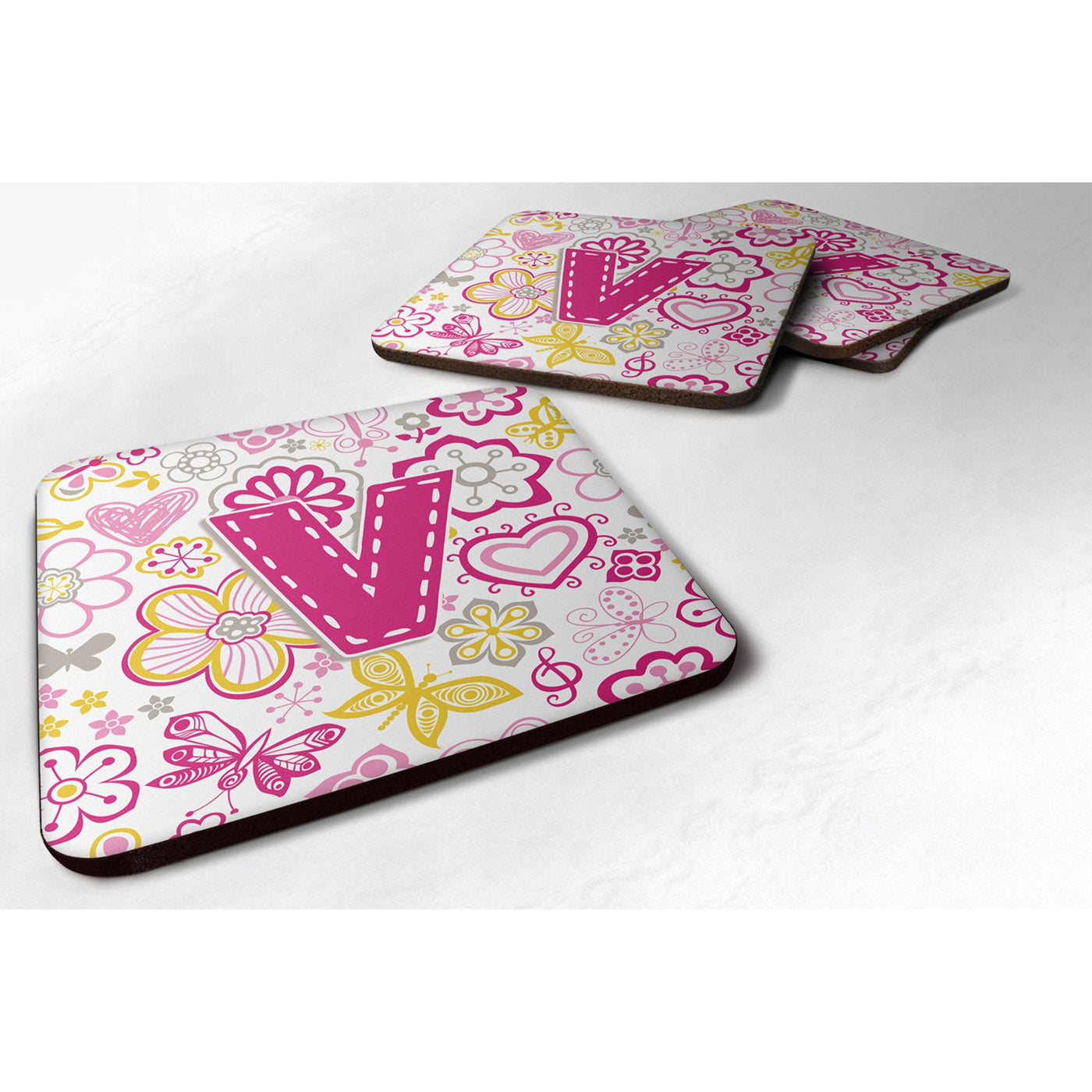 'Caroline's Treasures CJ2005-VFC Letter V Flowers and Butterflies Pink Foam Coasters (Set of 4) 3.5'''' Multicolor''