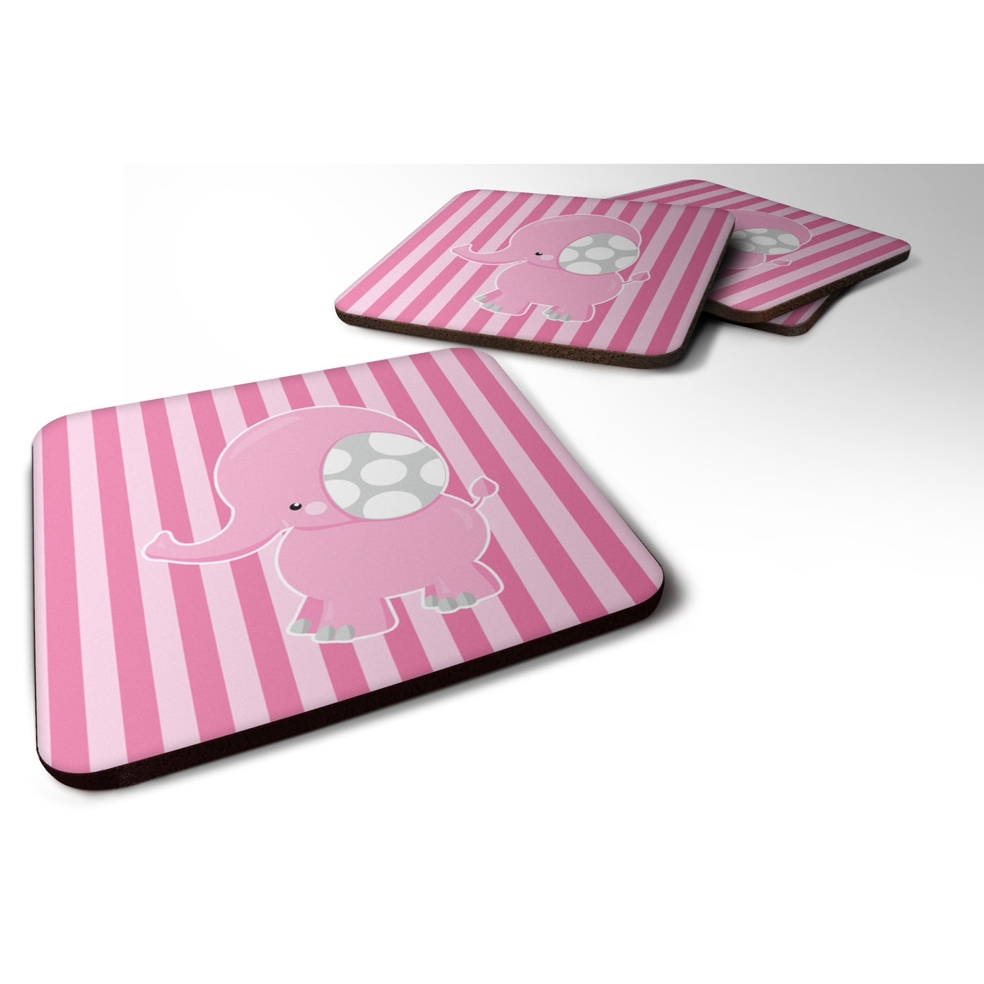 'Caroline's Treasures Elephant On Pink Stripes Foam Coaster Set of 4 3.5 Multicolor''