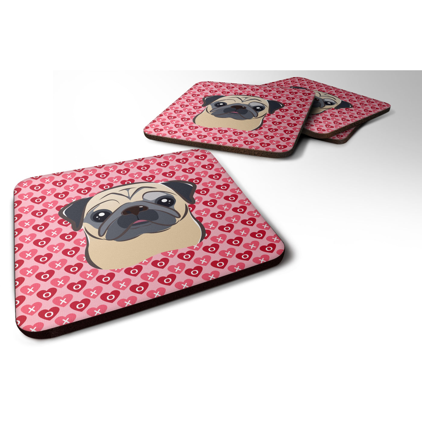 'Caroline's Treasures Fawn Pug Hearts Foam Coaster Set of 4 3.5 Multicolor''